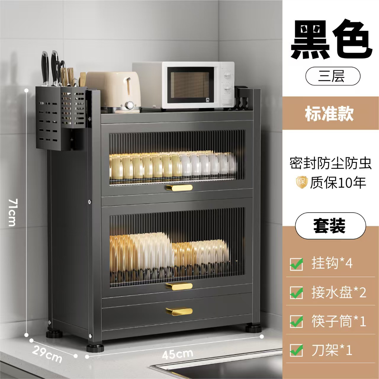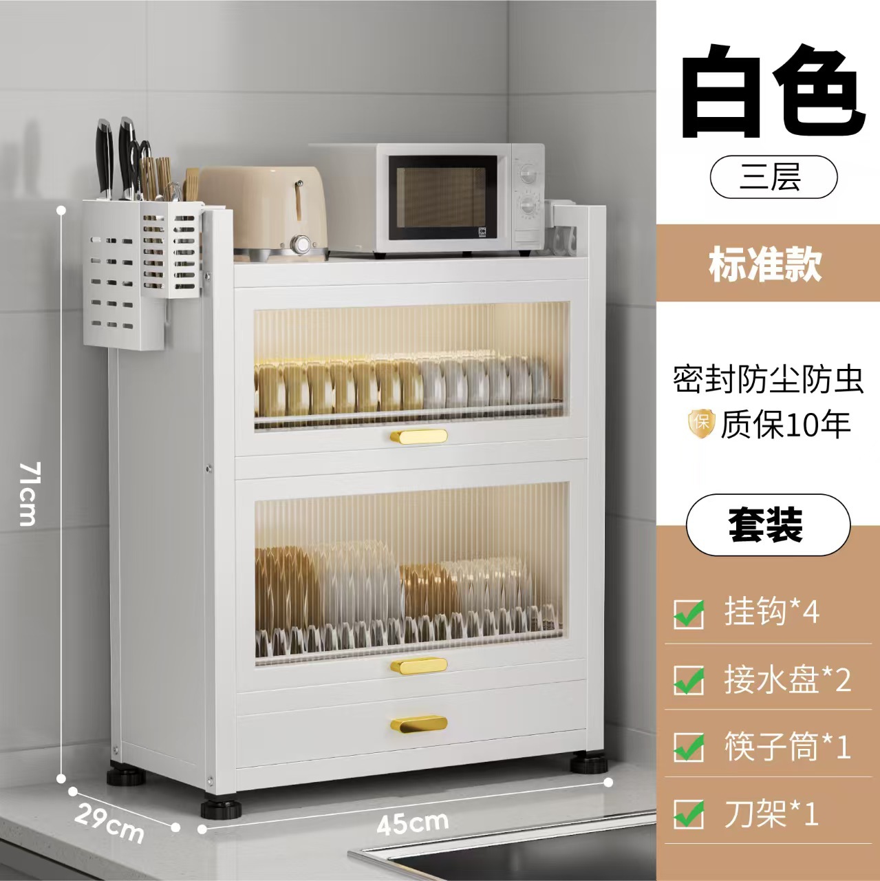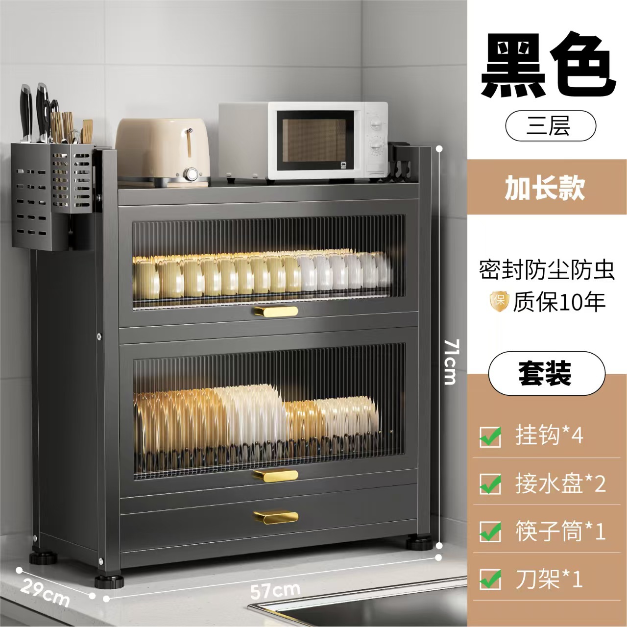 碗柜厨房多层碗碟置物架家用碗架台面筷盘防尘收纳盒带门沥水架