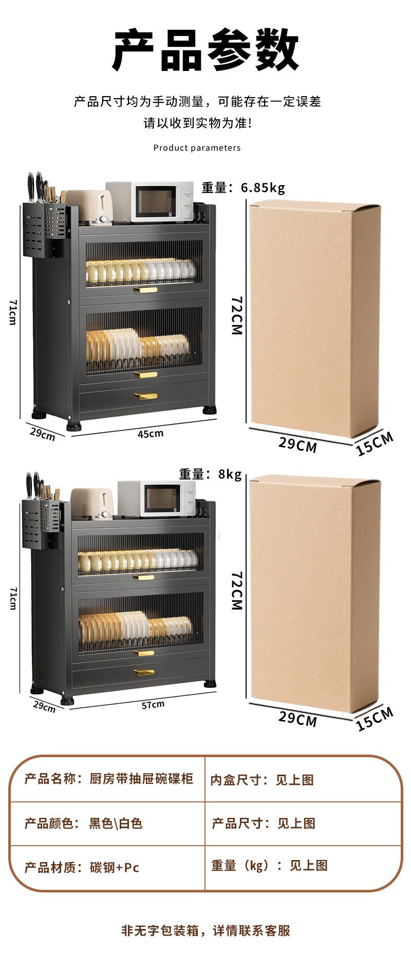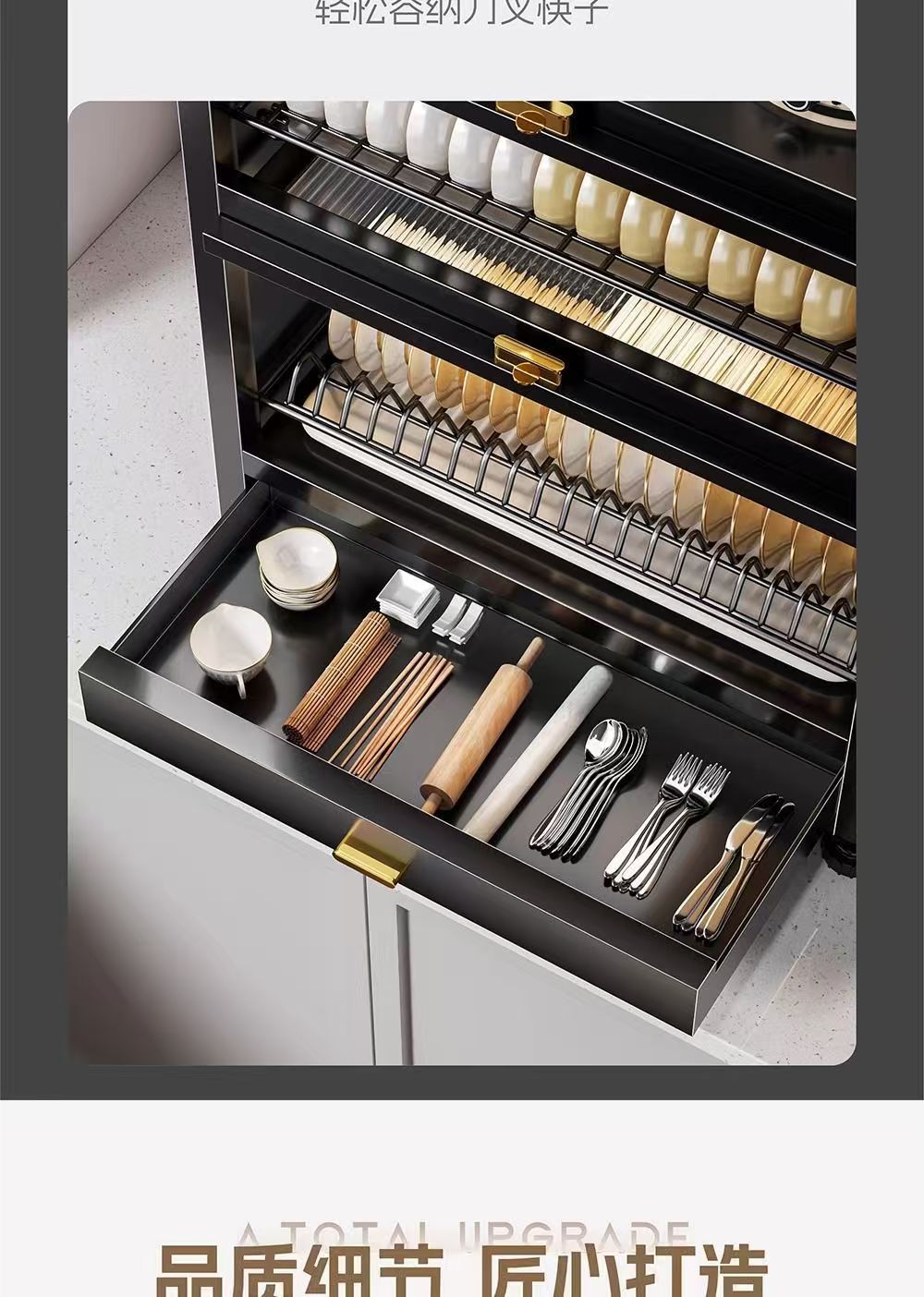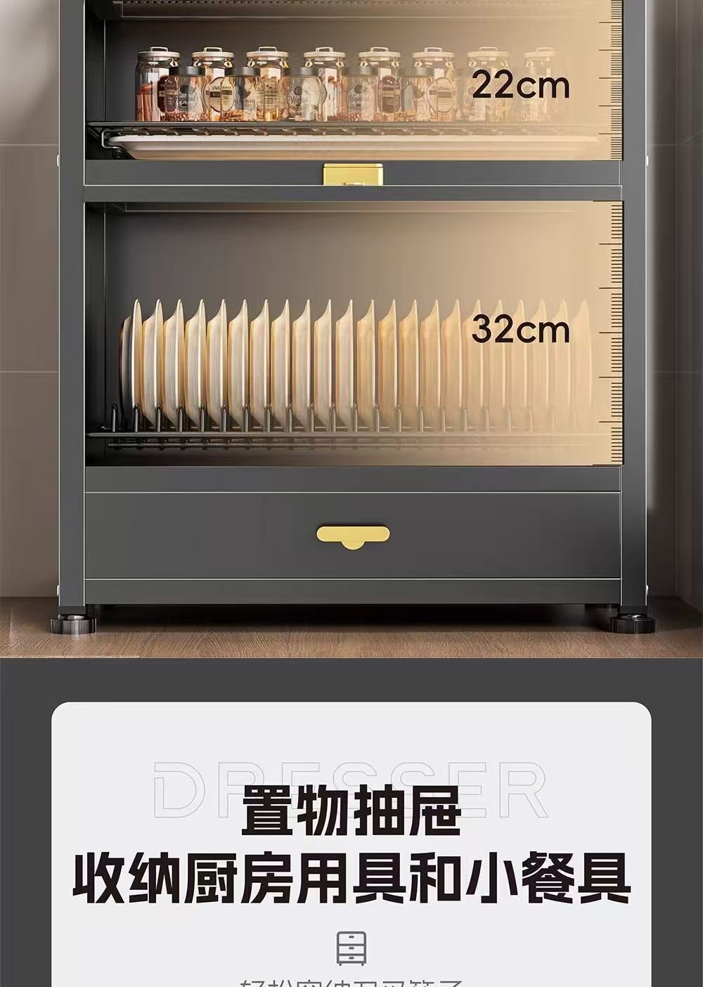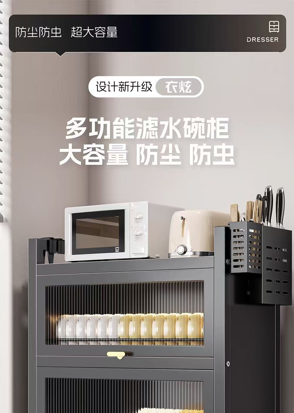 碗柜厨房多层碗碟置物架家用碗架台面筷盘防尘收纳盒带门沥水架