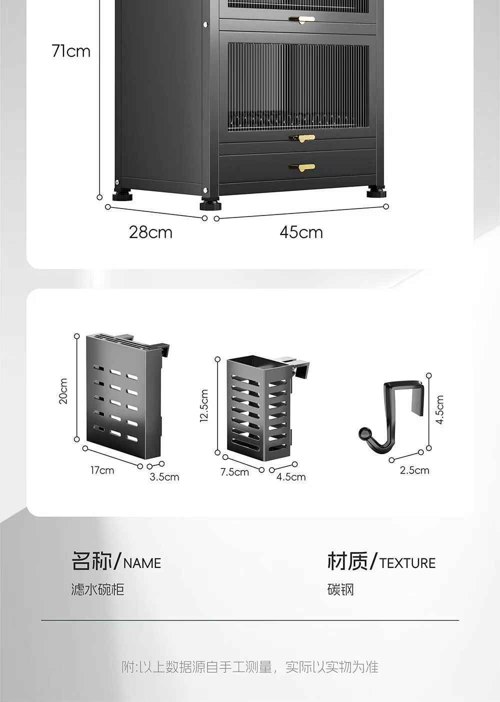 다층 식기 보관대, 주방용 식기 선반, 칼붙이 및 접시 보관함, 방진 수납함, 다용도 도어형 배수 선반