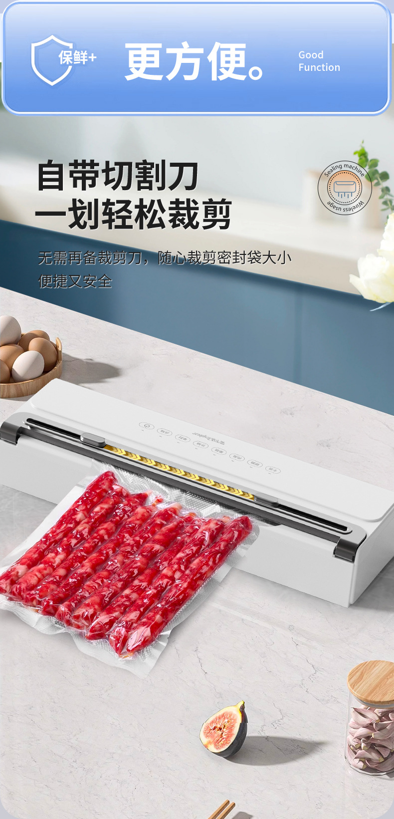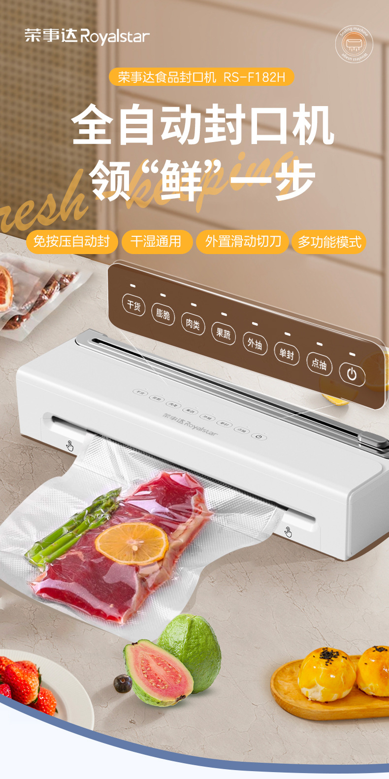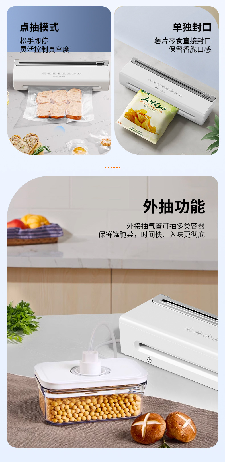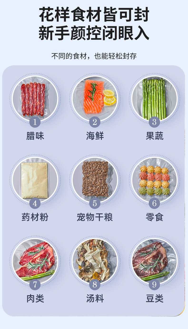 功能介绍:免按压真空封口 单封口 外抽等