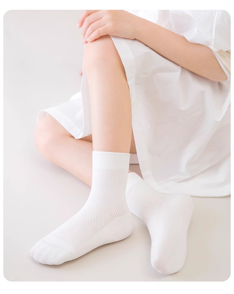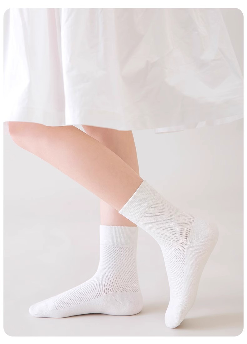 [신제품] 여름 어린이 양말 얇은 메쉬 땀 흡수 소녀 중간 튜브 청소년 흰색 통기성 학생 아기