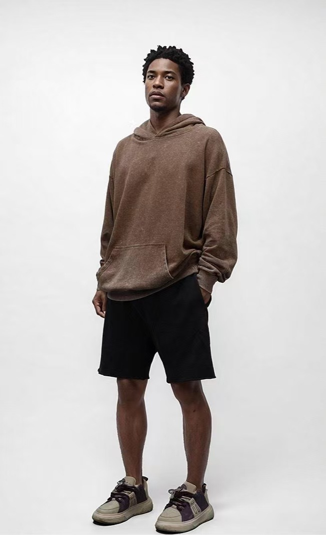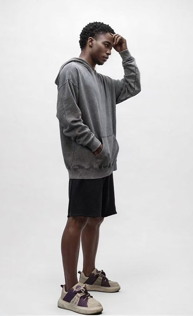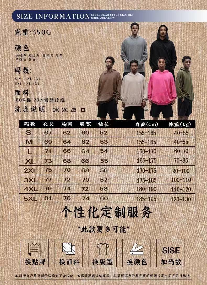 헤비급 350g 미국 트렌디 브랜드 디스트레스드 스웨트셔츠 남성용 레트로 워싱 스웨트셔츠 후드티 루즈 숄더 테리 탑스토어 가기
