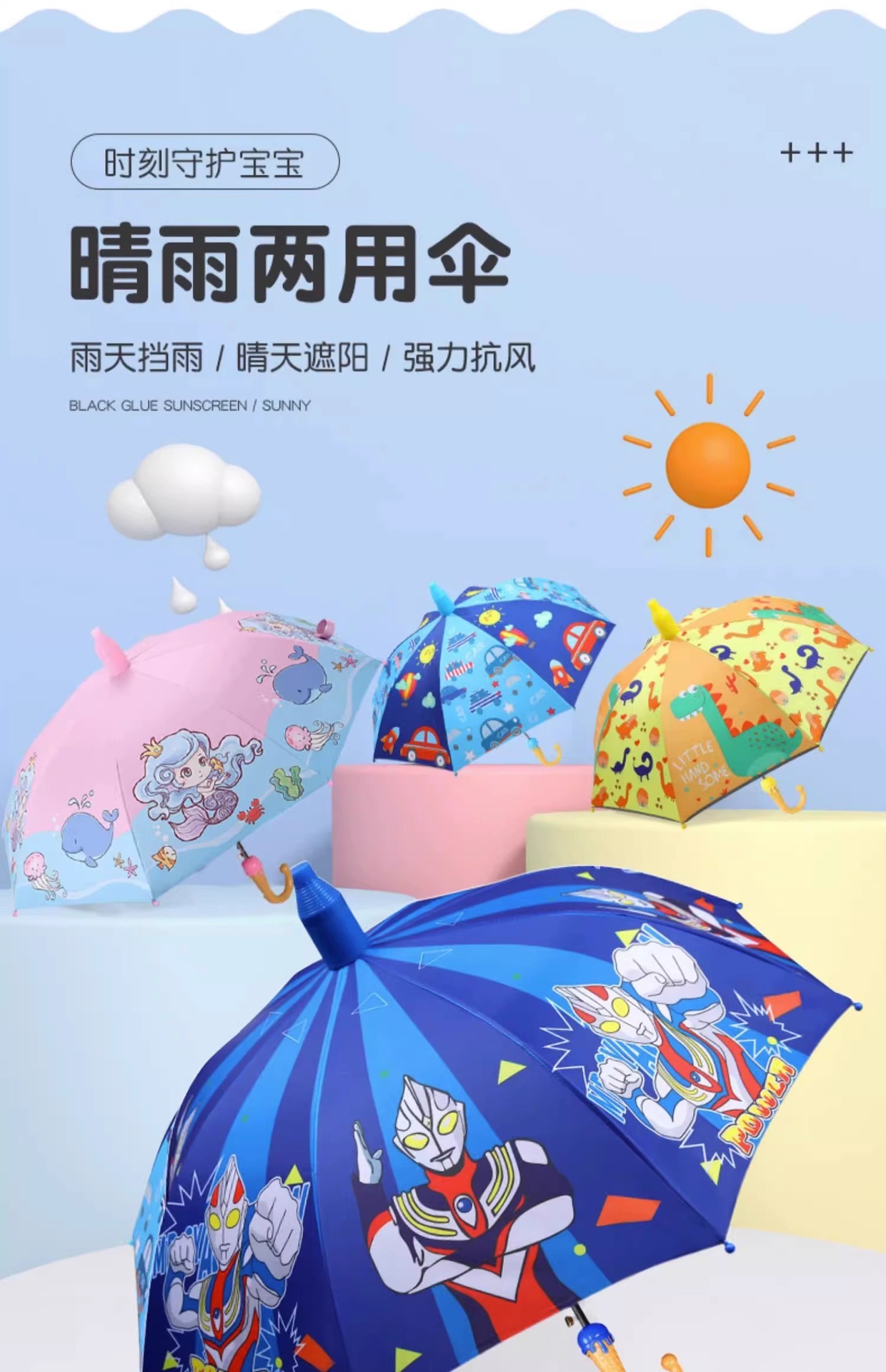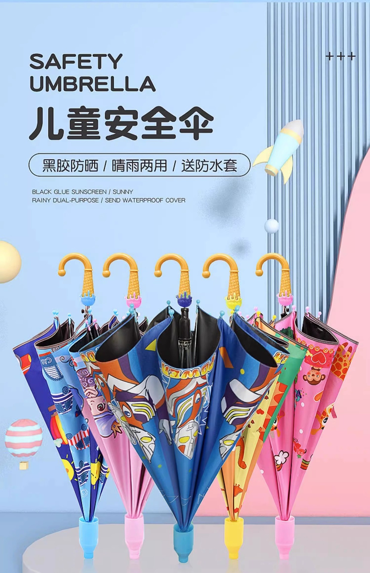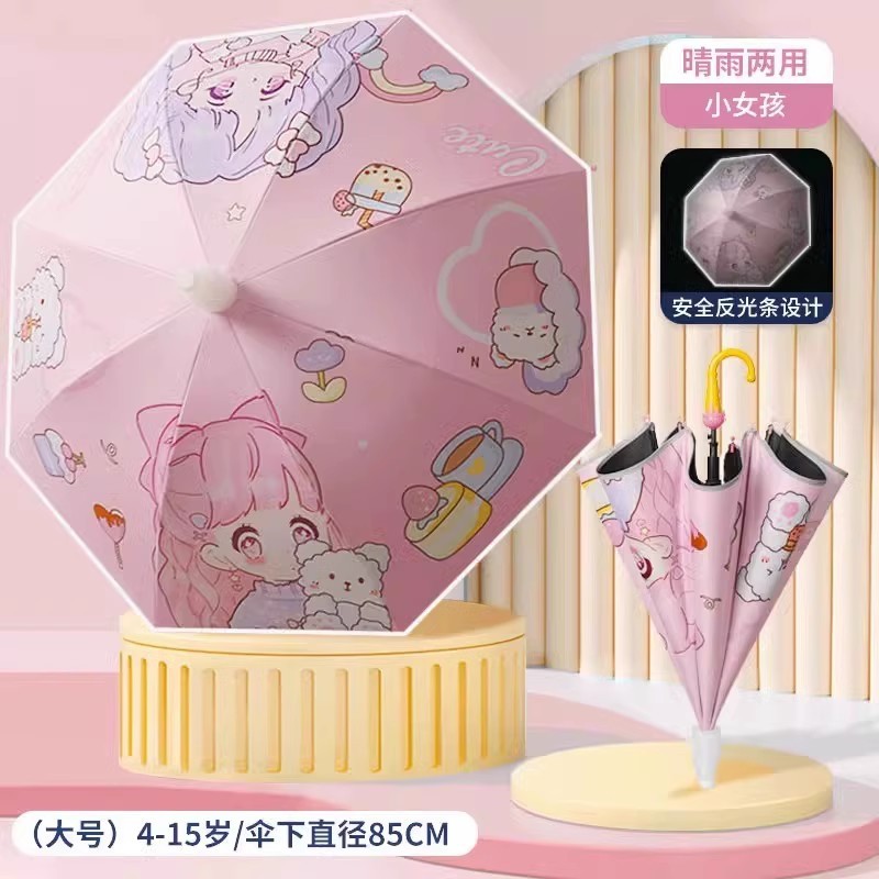 어린이 우산 유치원 두껍고 강화된 비 또는 빛 양산 우산 남성용 학교 파라솔 방수 커버 포함