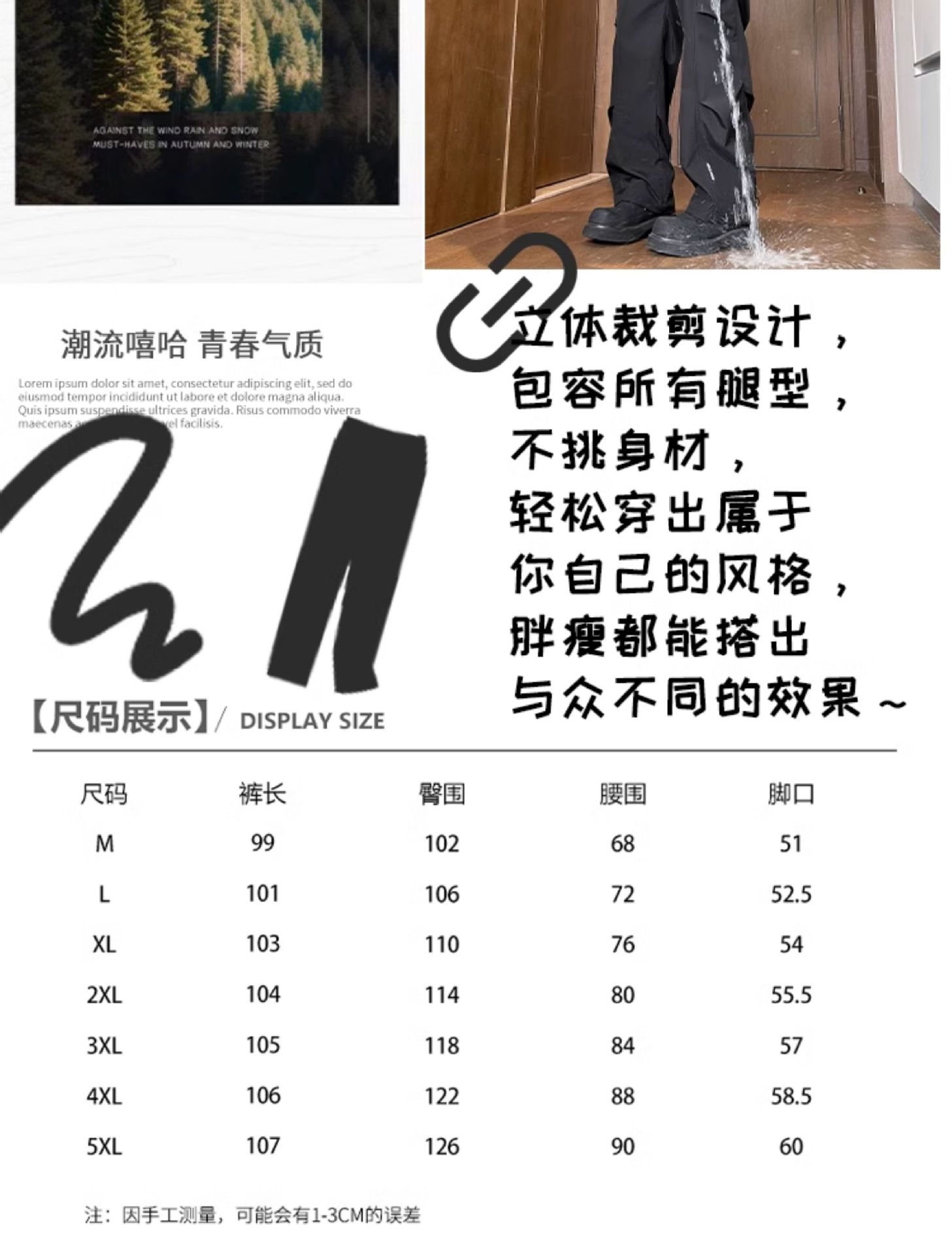 D-A232-HK9559-P40 남성용 블랙 나일론 낙하산 충전 바지 가을 미국 기능성 야외 방수 바지스토어 가기