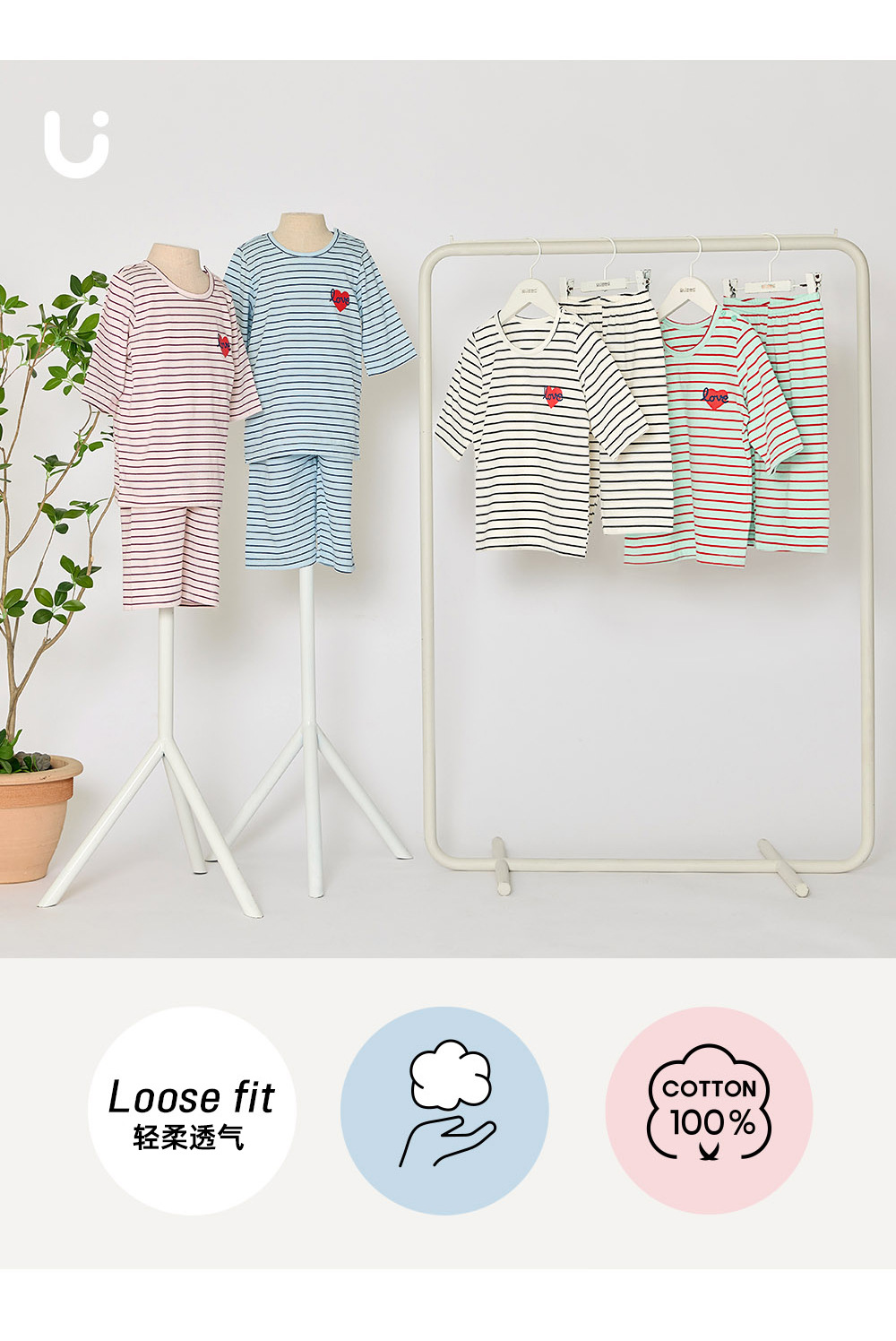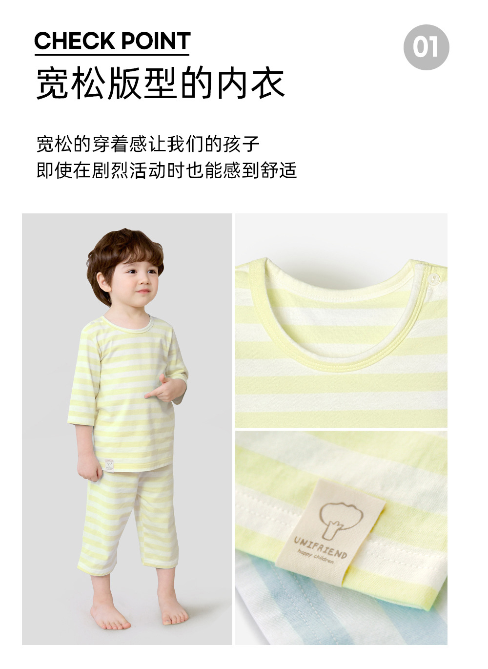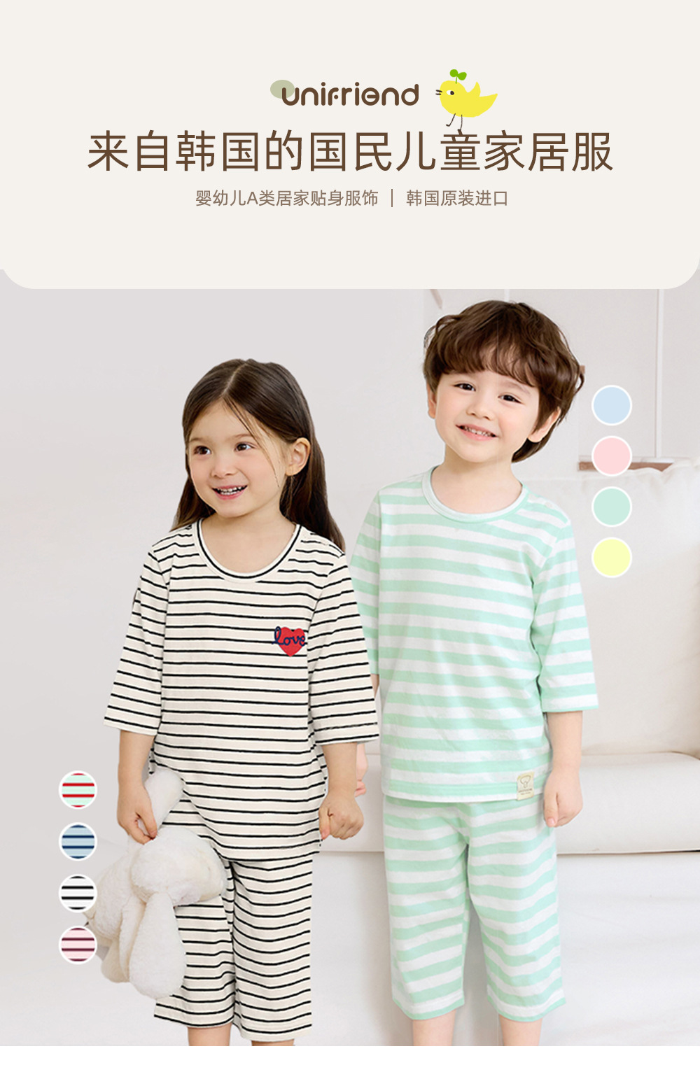 Unifriend 아동복 아동 잠옷 여름 카테고리 A 7부 소매 에어컨 의류 속옷 소년 소녀 가정 의류 세트스토어 가기