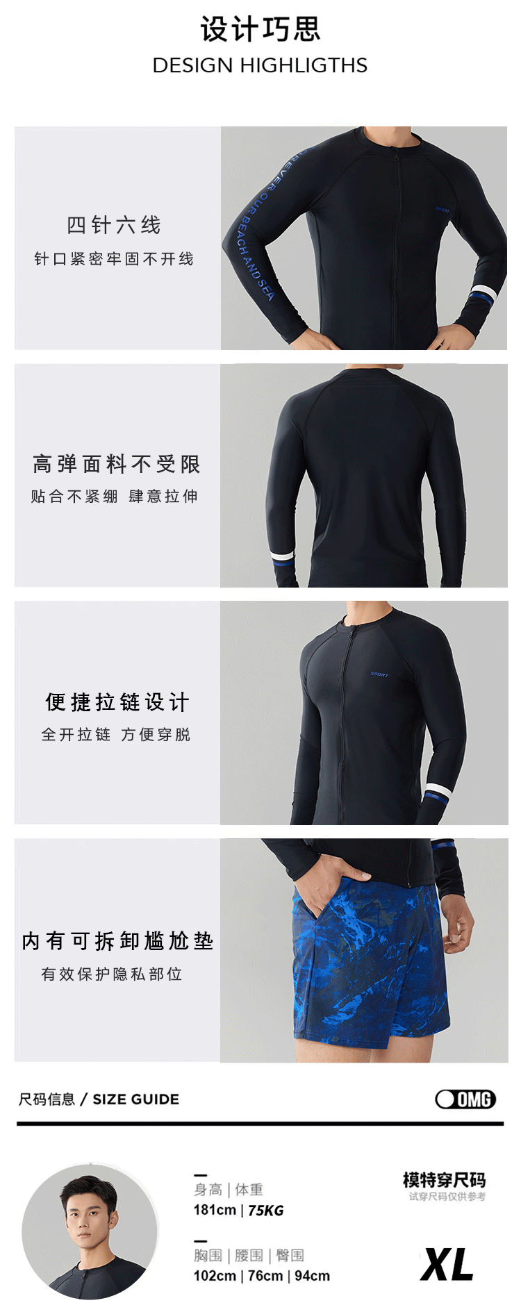2025 새로운 남성 스플릿 긴 소매 대형 태양 보호 지퍼 다이빙 서핑 래프팅 인기 수영복 도매스토어 가기