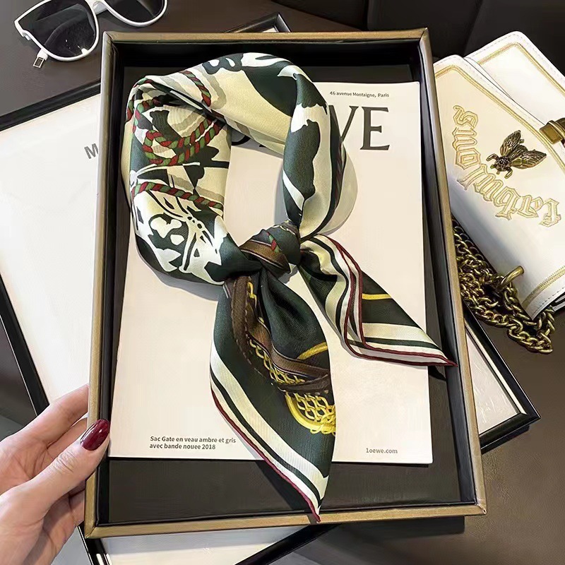 여성을 위한 패셔너블한 레오파드 프린트 작은 실크 스카프, 70개의 정사각형 스카프, 다용도 및 고급 한국식 목 스카프, 스카프, 다양한 도매 가방스토어 가기