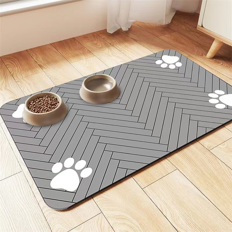 TEMU 라벨링 및 배송 개 식사 매트, 애완동물 먹는 물 튀김 방지 바닥 매트, 얼룩 방지 및 관리가 쉬운 규조토 진흙 발 매트