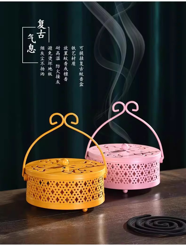 모기향 트레이, 가정용 모기향 홀더 트레이, 철제 방화 및 화상 방지, 뚜껑 포함, 실내 창의적인 향로, 모기향 상자스토어 가기