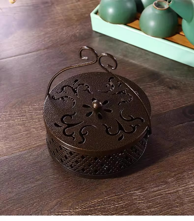 모기향 트레이, 가정용 모기향 홀더 트레이, 철제 방화 및 화상 방지, 뚜껑 포함, 실내 창의적인 향로, 모기향 상자