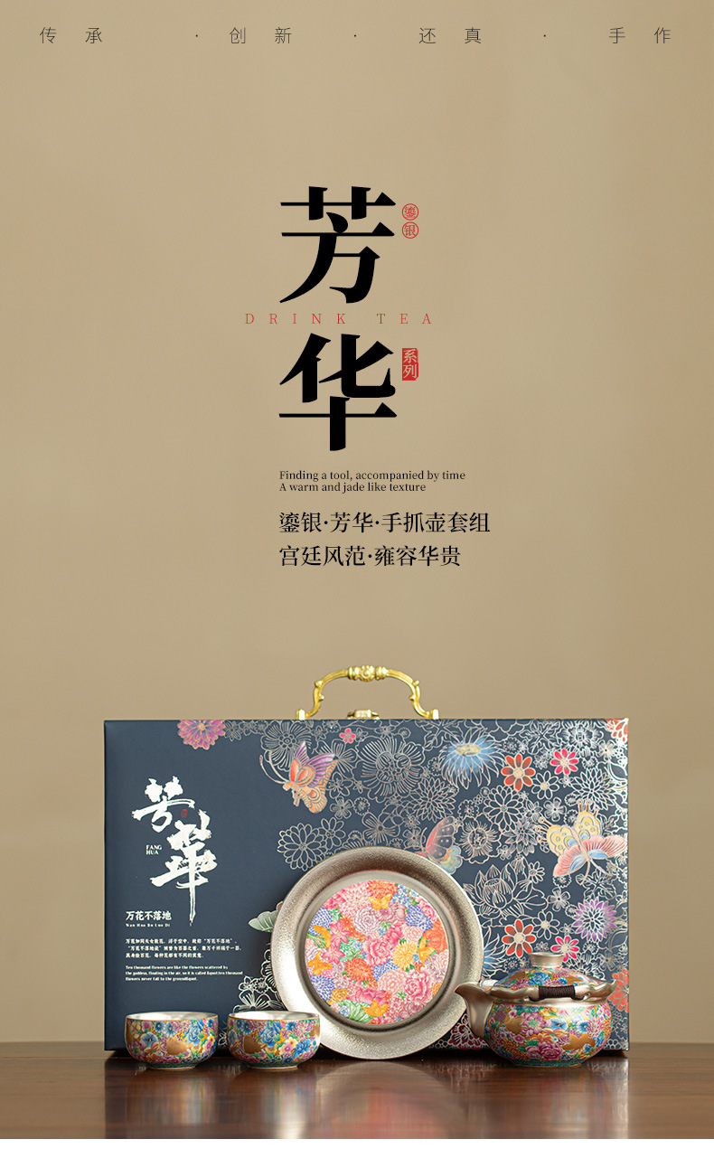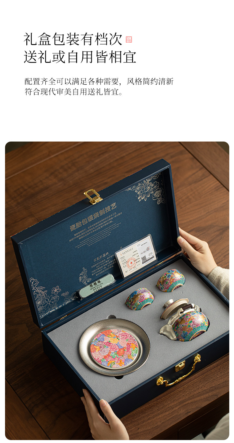 궁전 스타일 은색 에나멜 주전자와 찻잔 선물 상자 세트 세라믹 차 세트 1 냄비 2 컵 냄비 휴일 선물스토어 가기