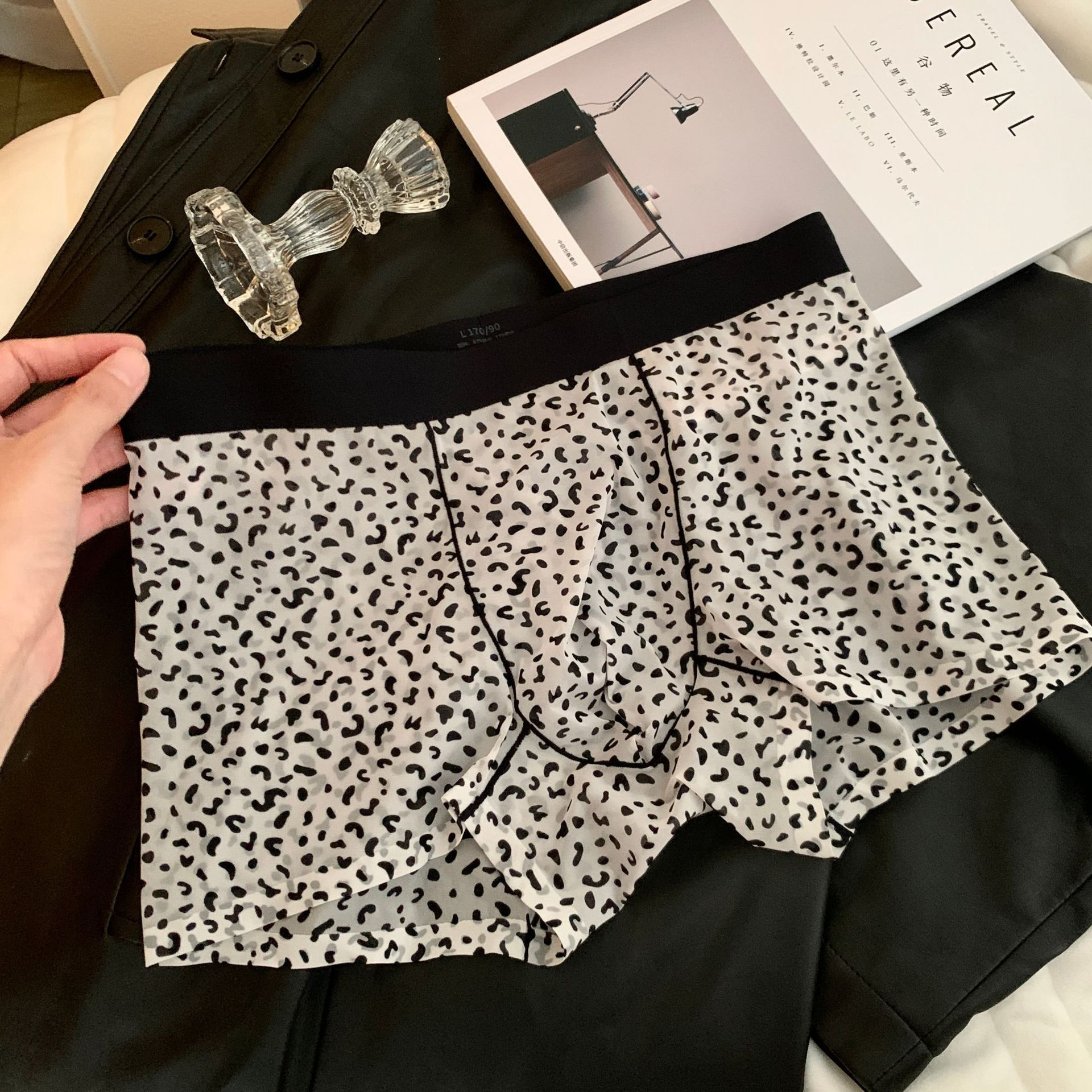 레오파드 프린트 남성 속옷 남성 섹시한 원활한 얼음 실크 10A 항균 복서 팬티 동백 향기 복서 팬티 투명