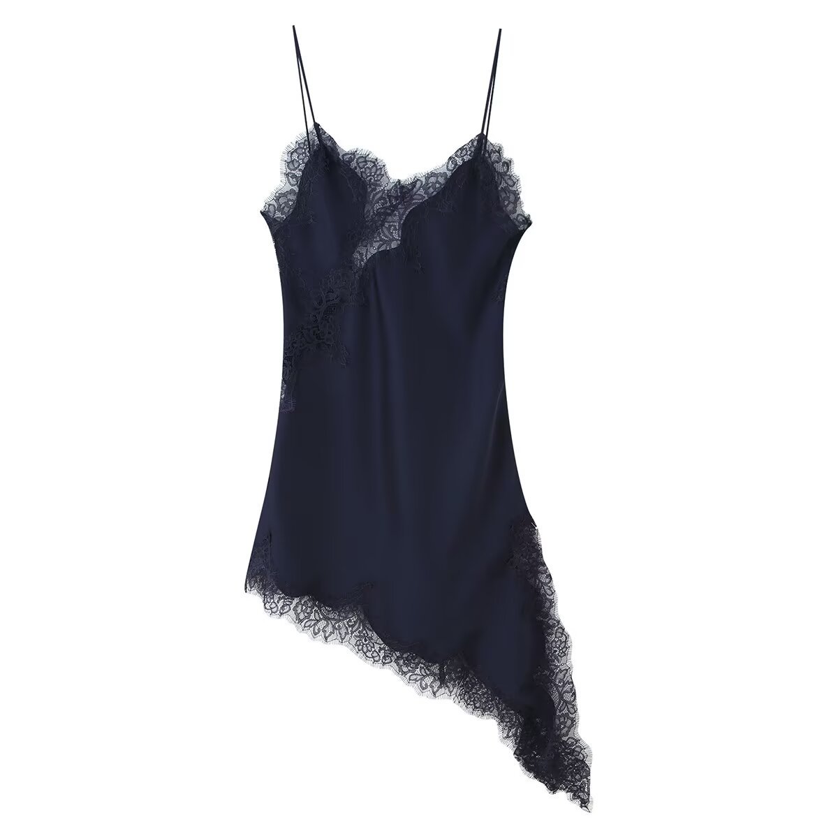 Z 크로스보더 아마존 도매 신상 여성용 다용도 브이넥 레이스 장식 비대칭 슬립 드레스 5919200