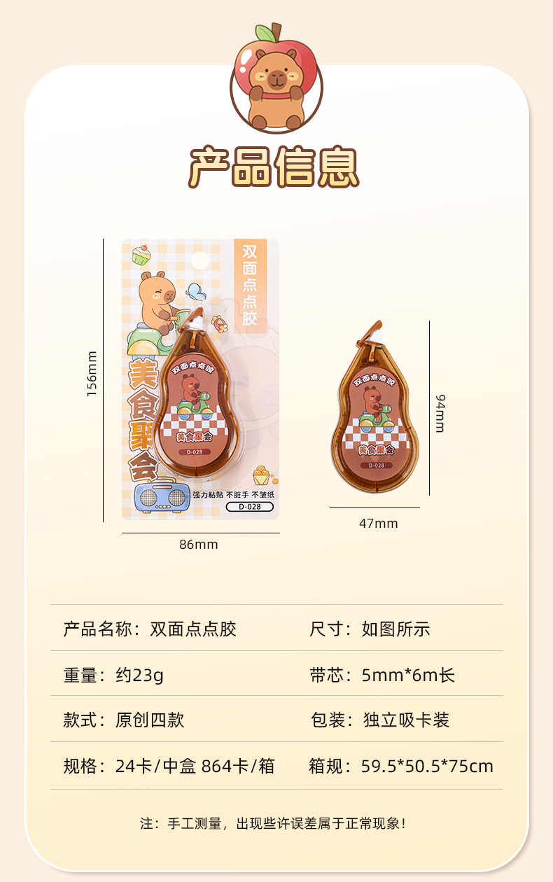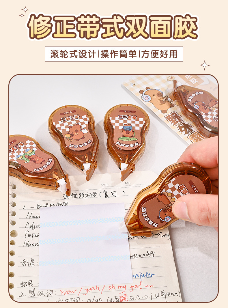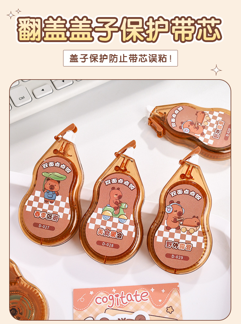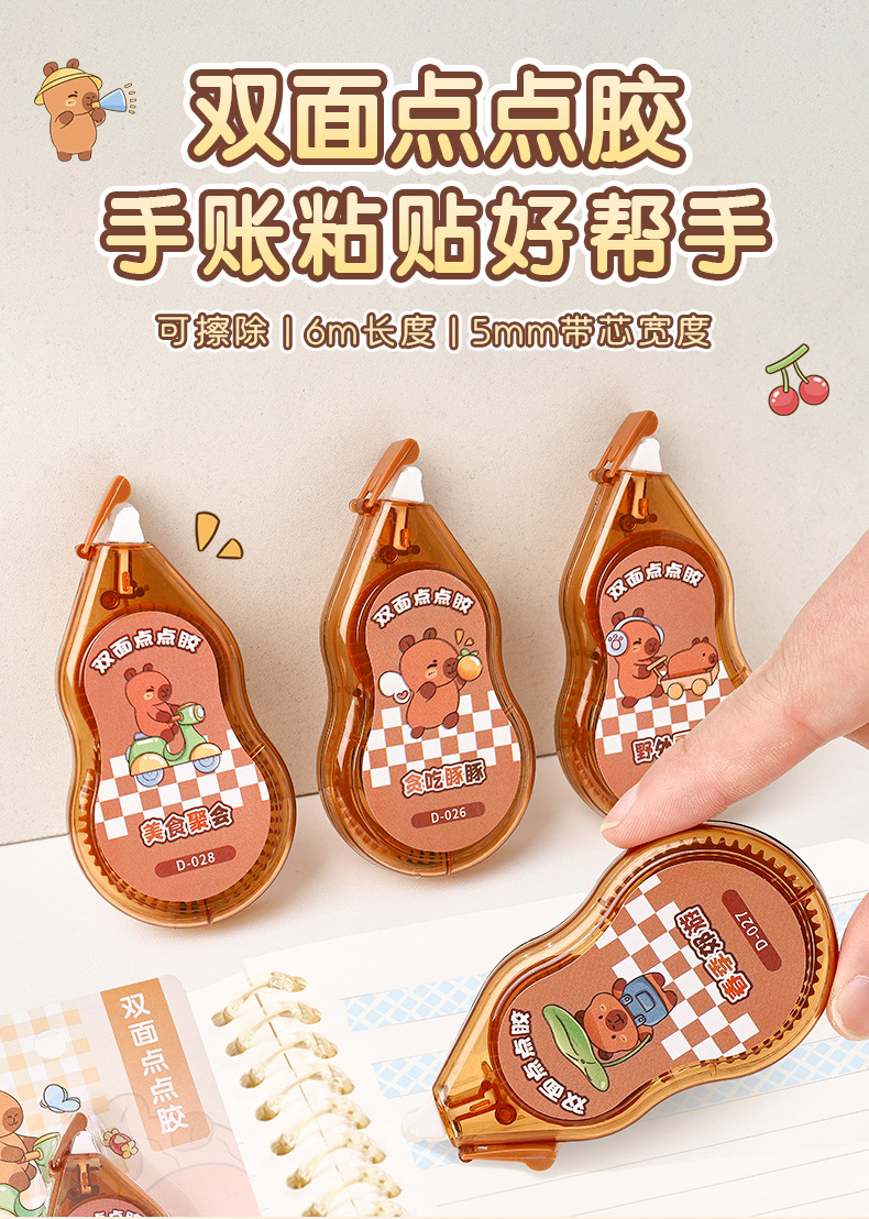 초등학생을 위한 크리에이티브 카피바라 양면 도트 접착제, 고급스러운 휴대용 도트 양면 접착제 수정 테이프