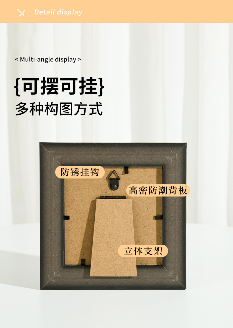二、相框成品包含:外框、塑料有机玻璃面板、随机图案画芯,后密度板背板、