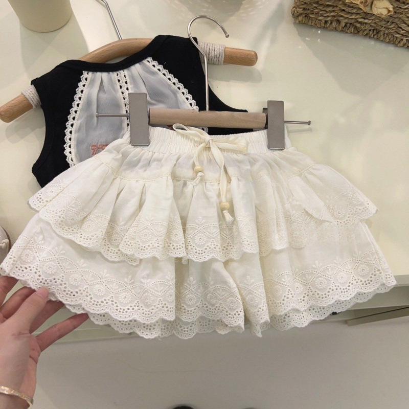 여자 스타일 정장 민소매 티셔츠 조끼 스커트 2025 여름 새로운 한국 스타일 공주 스커트 투피스 탑