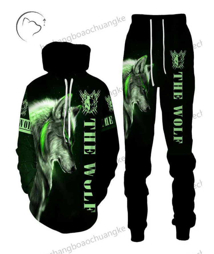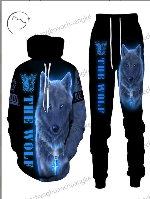 유럽과 미국의 대외 무역을 위한 공장 직접 공급 새로운 슈트 3D 늑대 동물 프린트 후드 풀오버 스웨트 남성 패션 스웨트 셔츠스토어 가기
