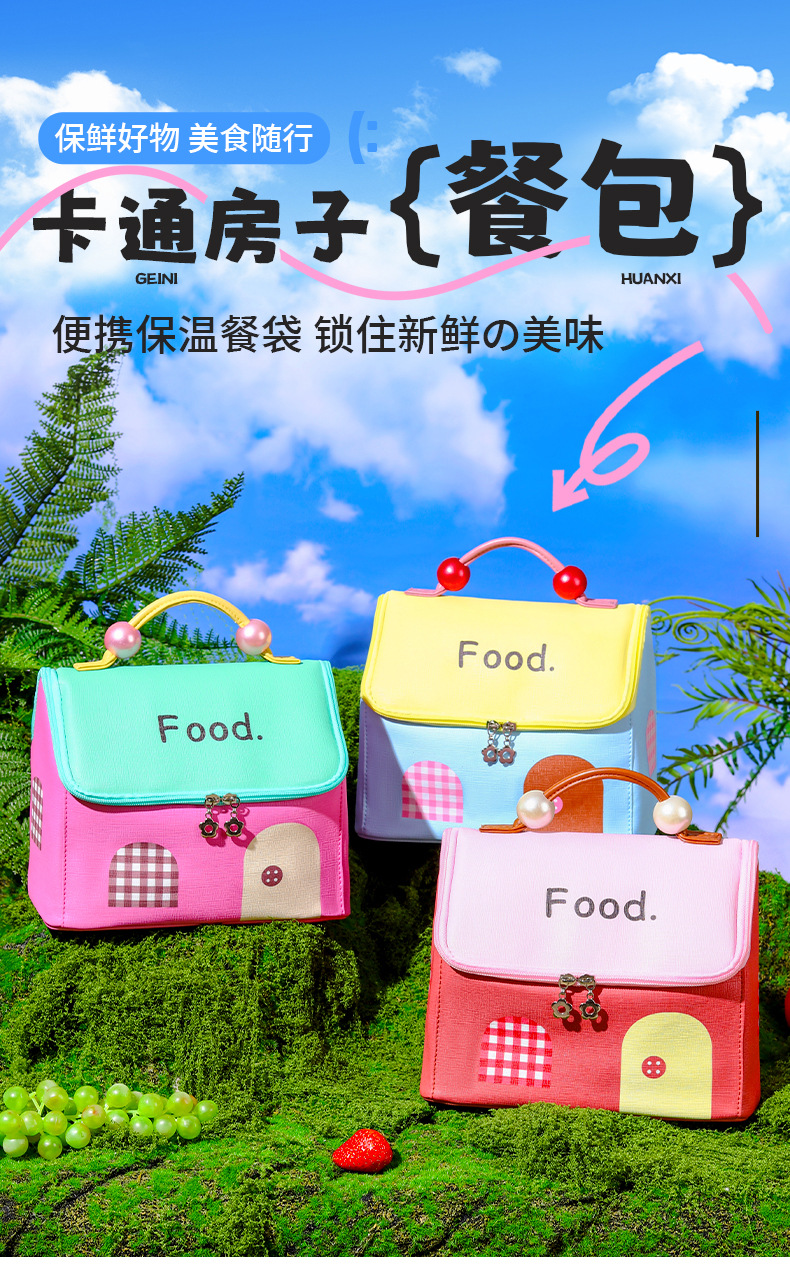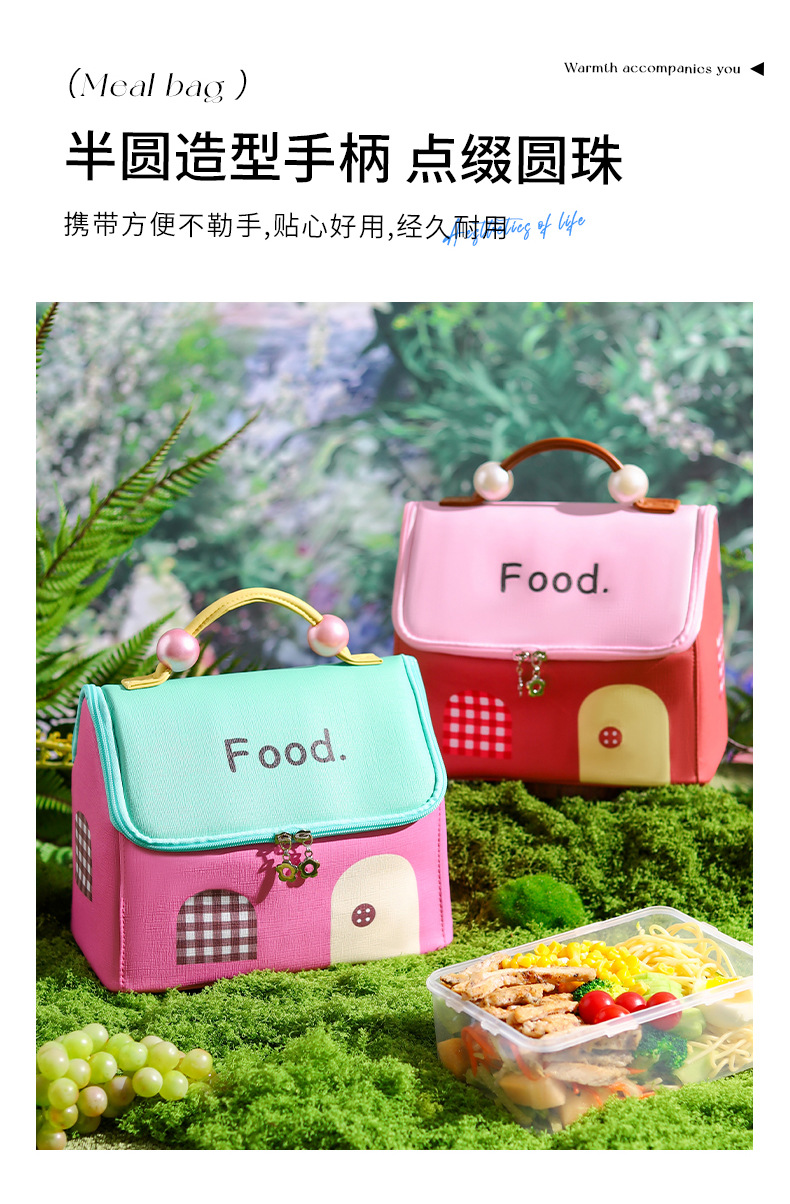 고급스러운 도시락가방, 인기있는 귀여운 작은집 도시락가방, 보온 도시락가방, 직장 및 학교용 휴대용 수납가방