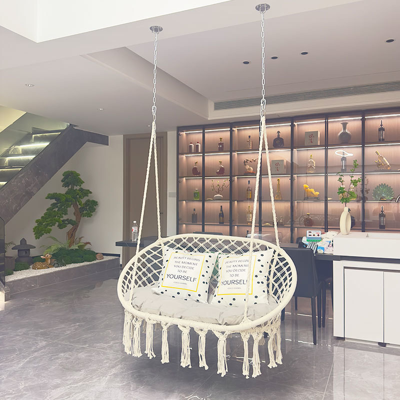 Ins 북유럽 실내 및 실외 더블 교수형 의자 홈 스윙 면 로프 인터넷 연예인 발코니 교수형 바구니 술 요람 교수형
