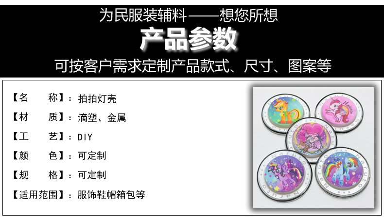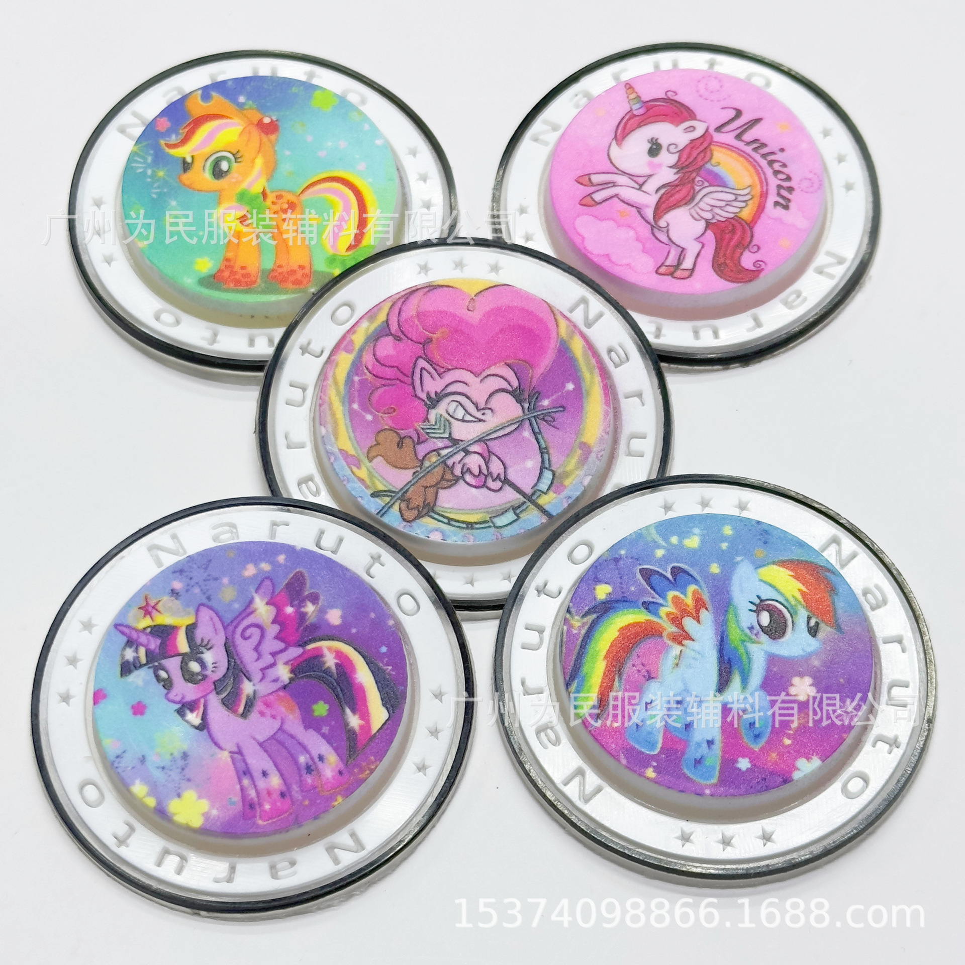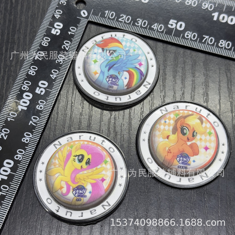 샘플을 받아보세요. 어린이용 마이 리틀 포니 UV 컬러 프린팅 원형 플라스틱 라벨 고무 스탬프, 물세척 가능한 뱃지입니다.스토어 가기