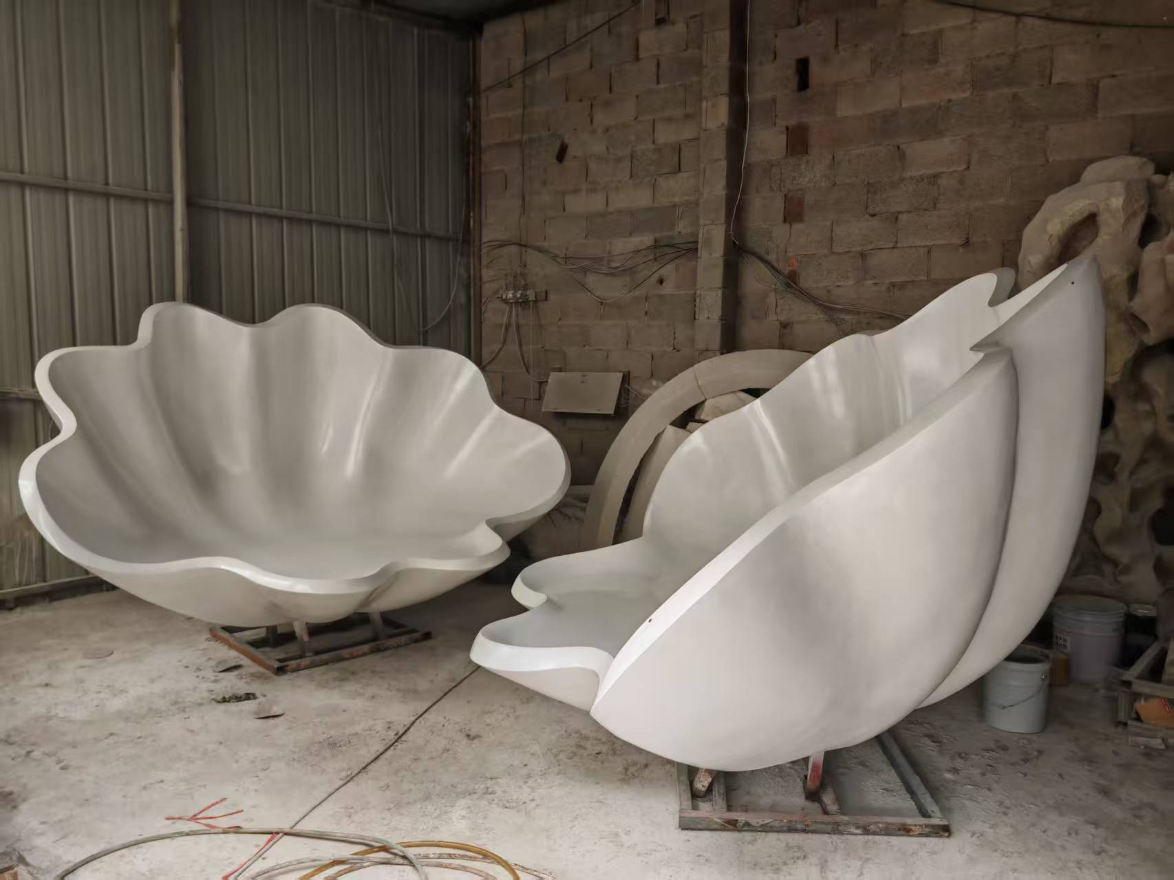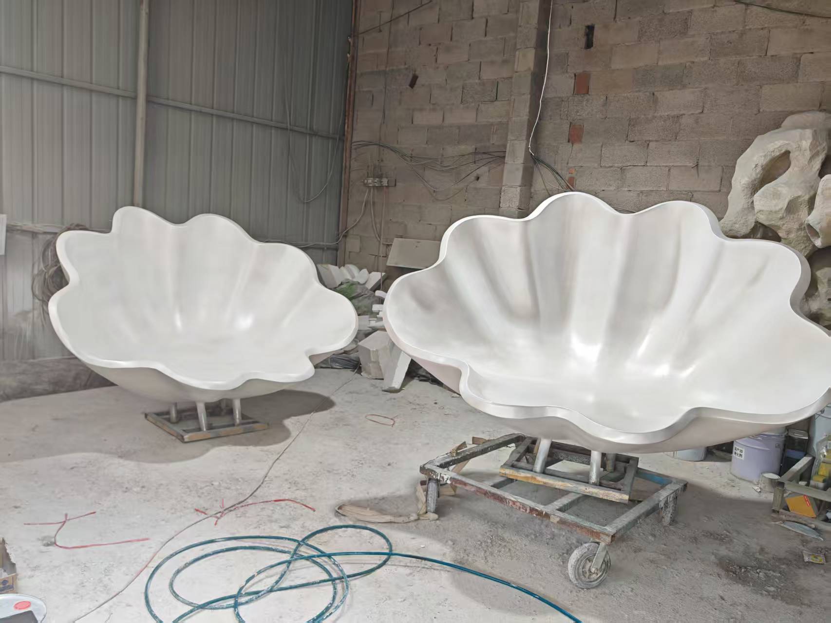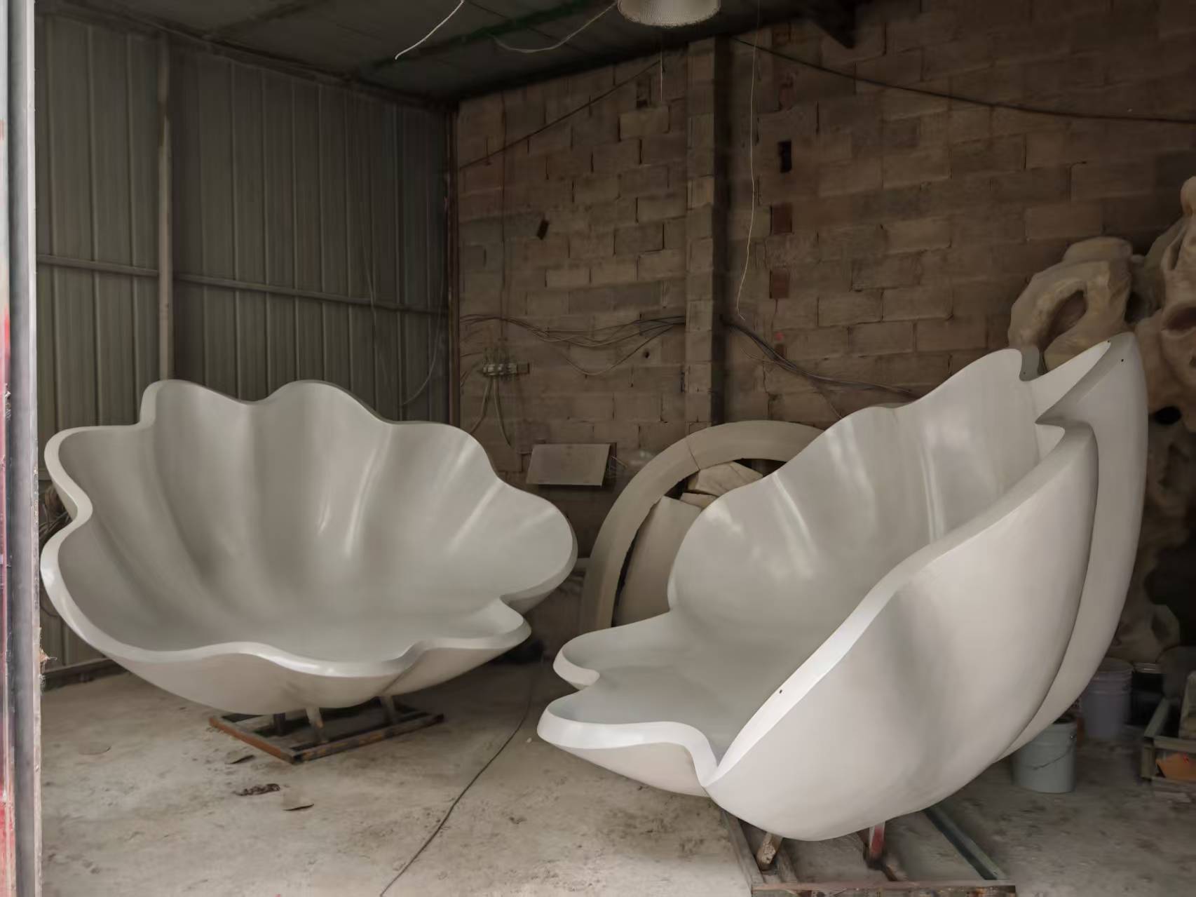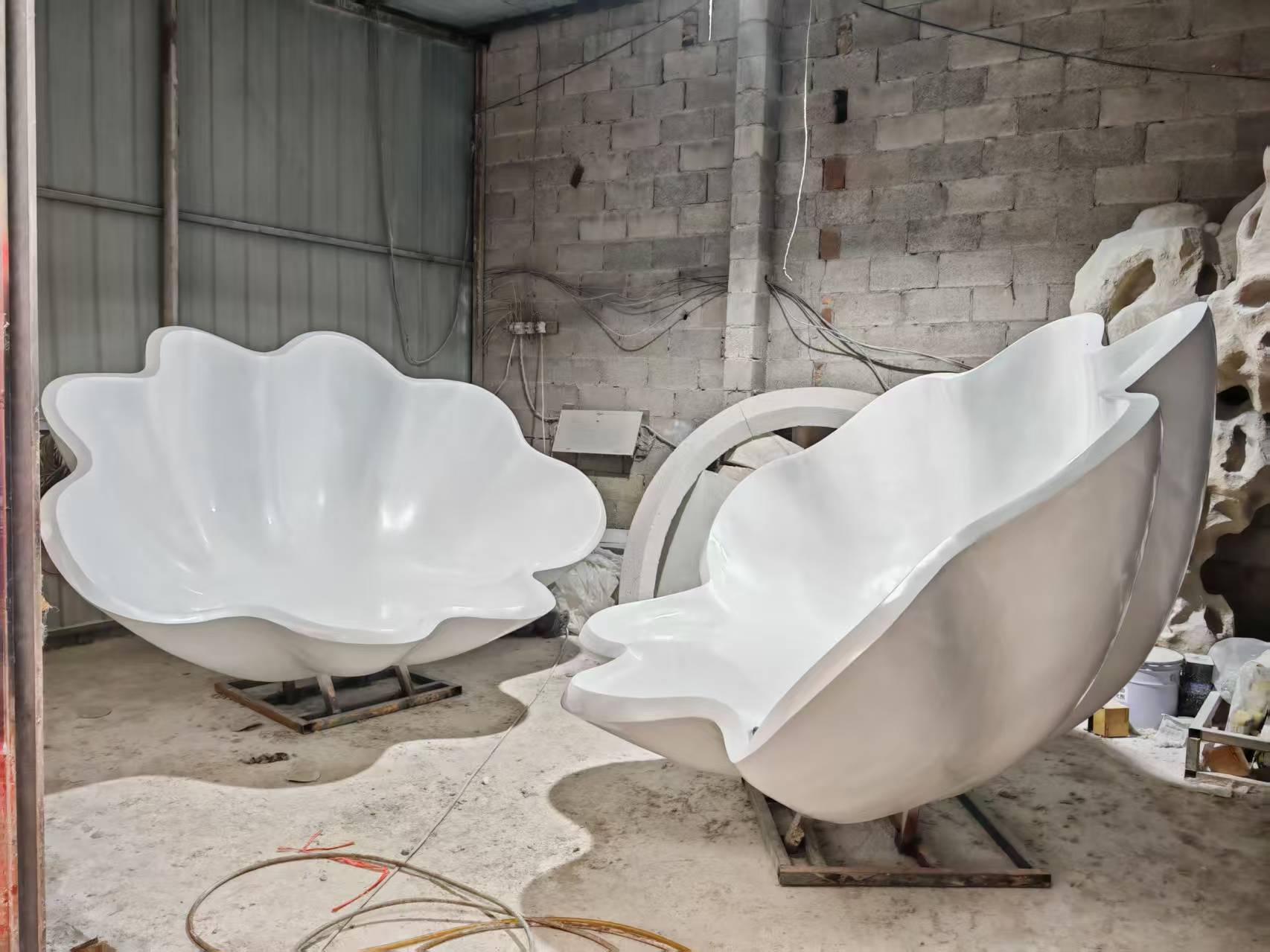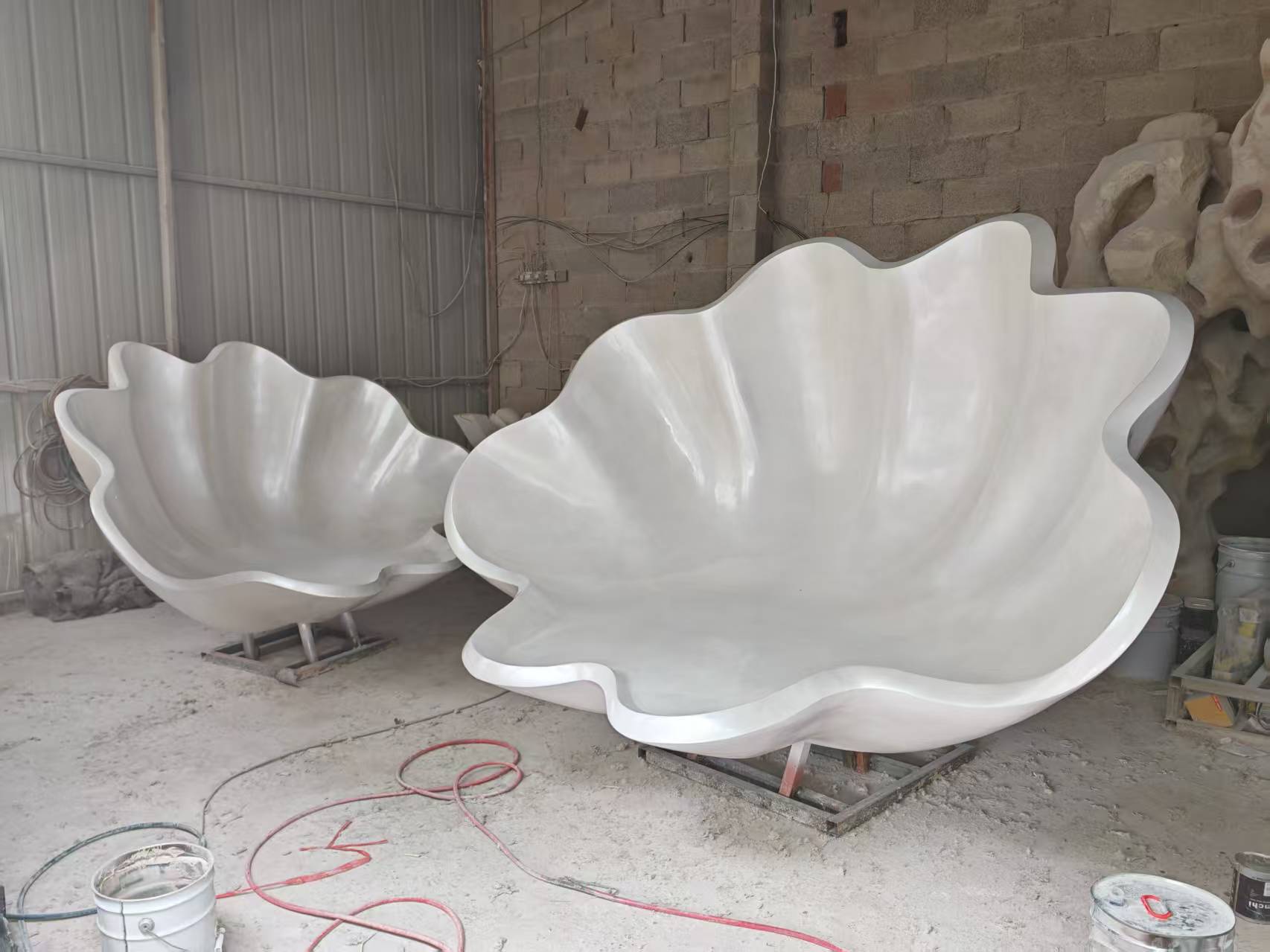 쉘 모양의 유리 섬유 조각 공원 광장 모양의 유리 섬유 좌석 가리비 테마 크리 에이 티브 동상