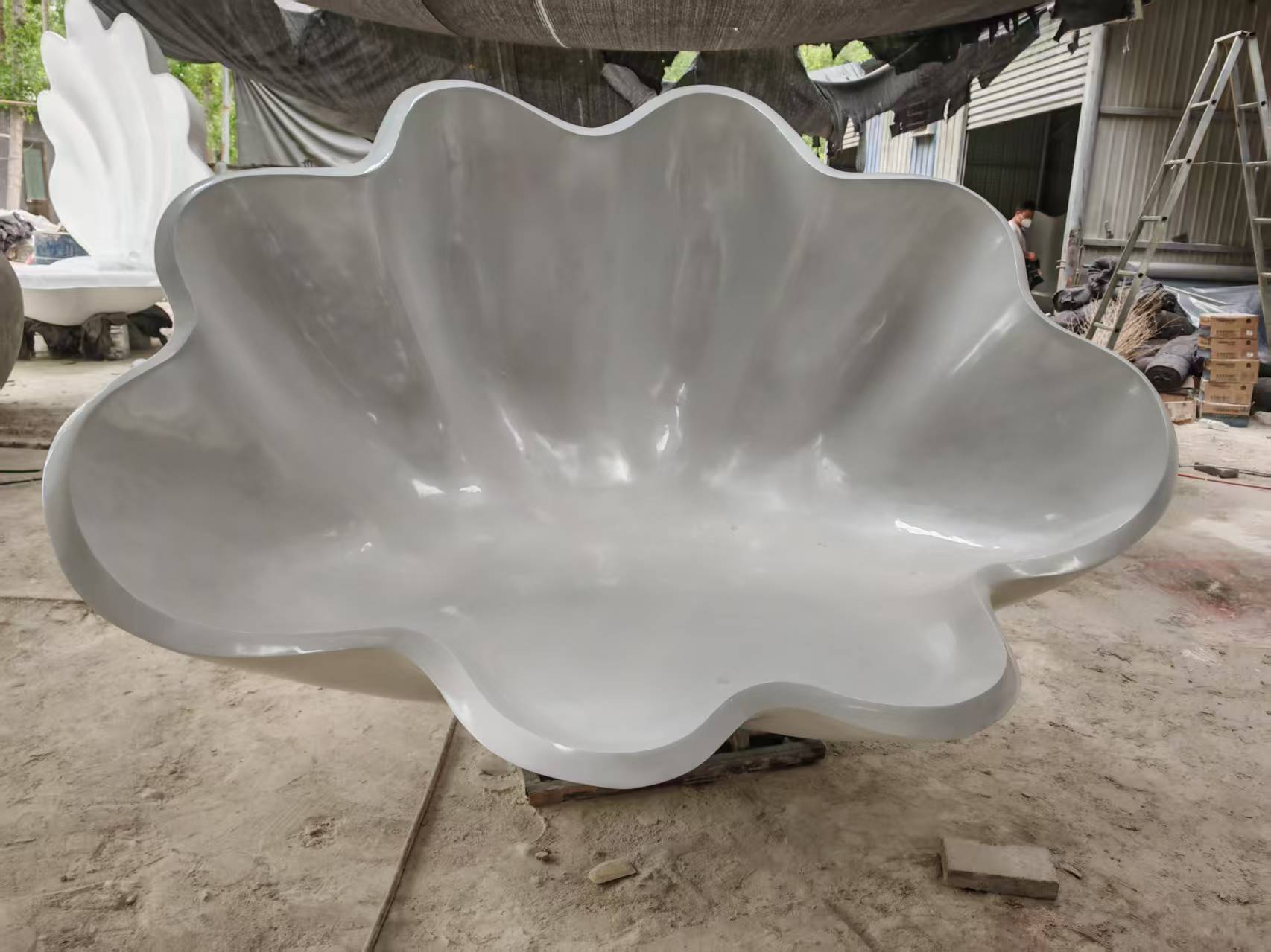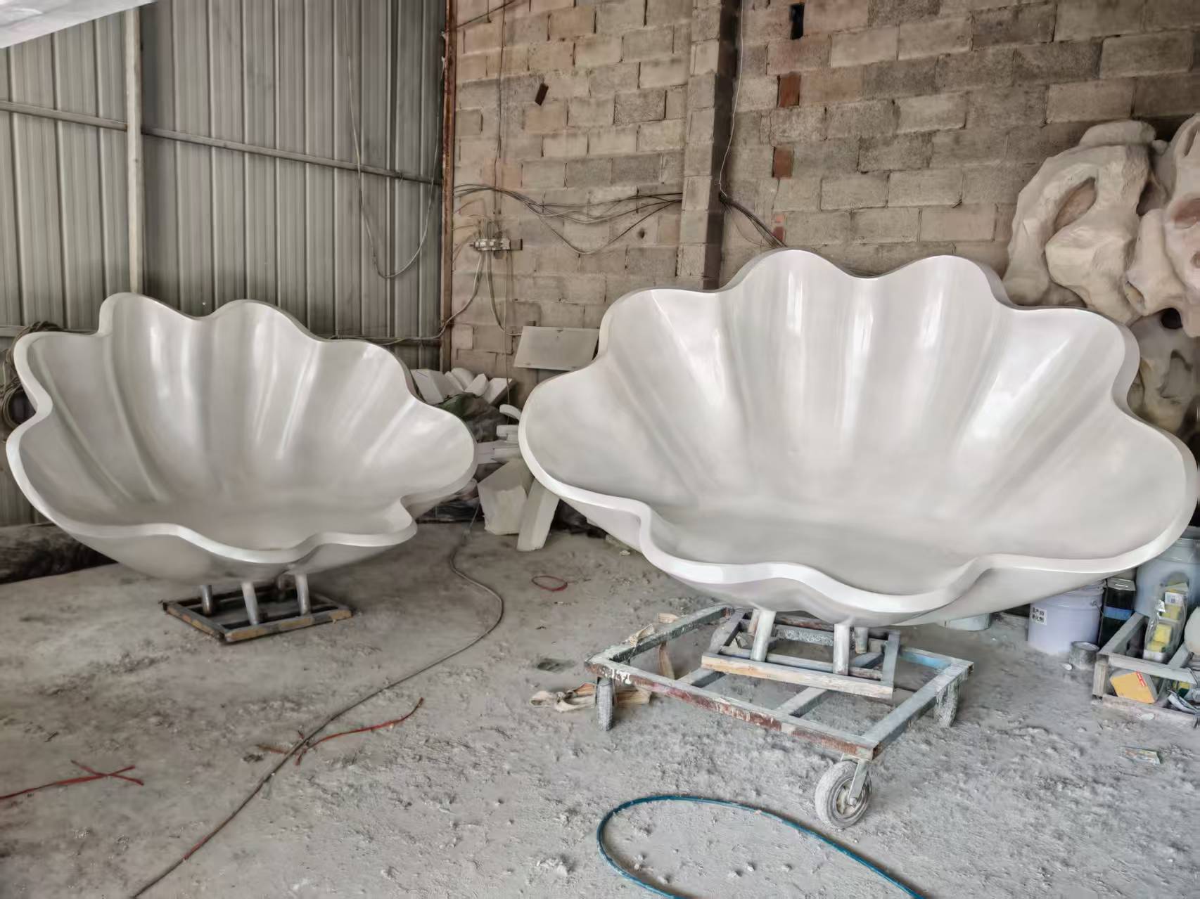 쉘 모양의 유리 섬유 조각 공원 광장 모양의 유리 섬유 좌석 가리비 테마 크리 에이 티브 동상스토어 가기