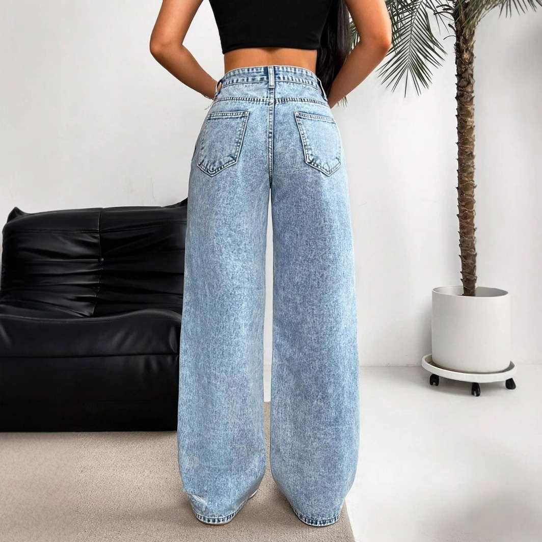 유럽과 미국의 국경 간 대외 무역 찢어진 청바지 워싱 하이 웨이스트 스트레이트 다용도 슬리밍 데님 바지 여성용 JEANS스토어 가기