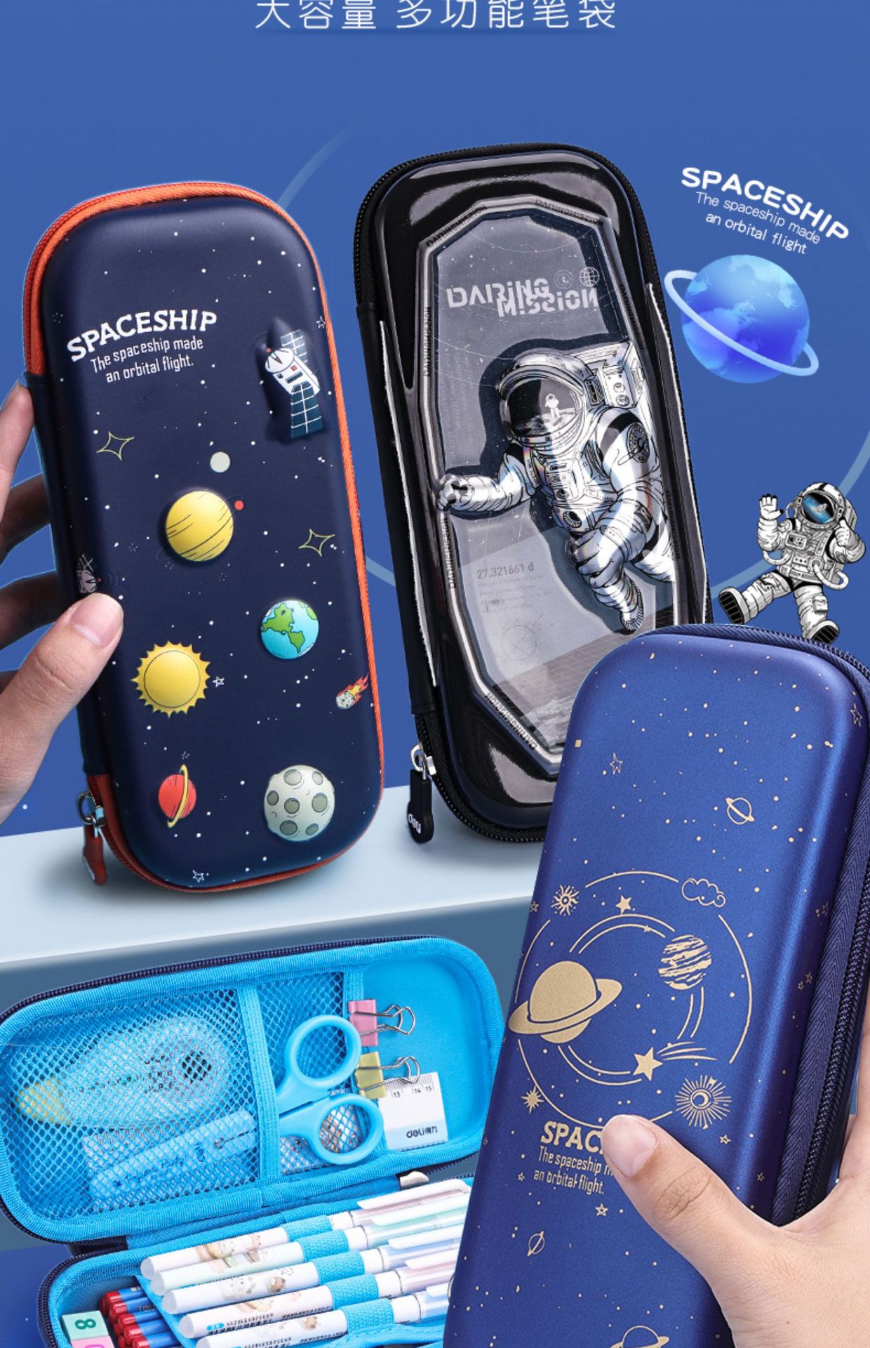 델리 67086 연필 가방 3D 만화 로봇 대용량 연필 가방 소녀 문구 상자 소년 소녀 연필 상자스토어 가기