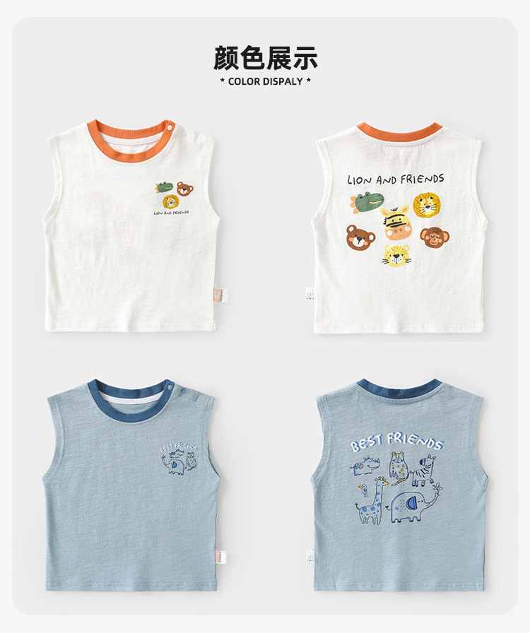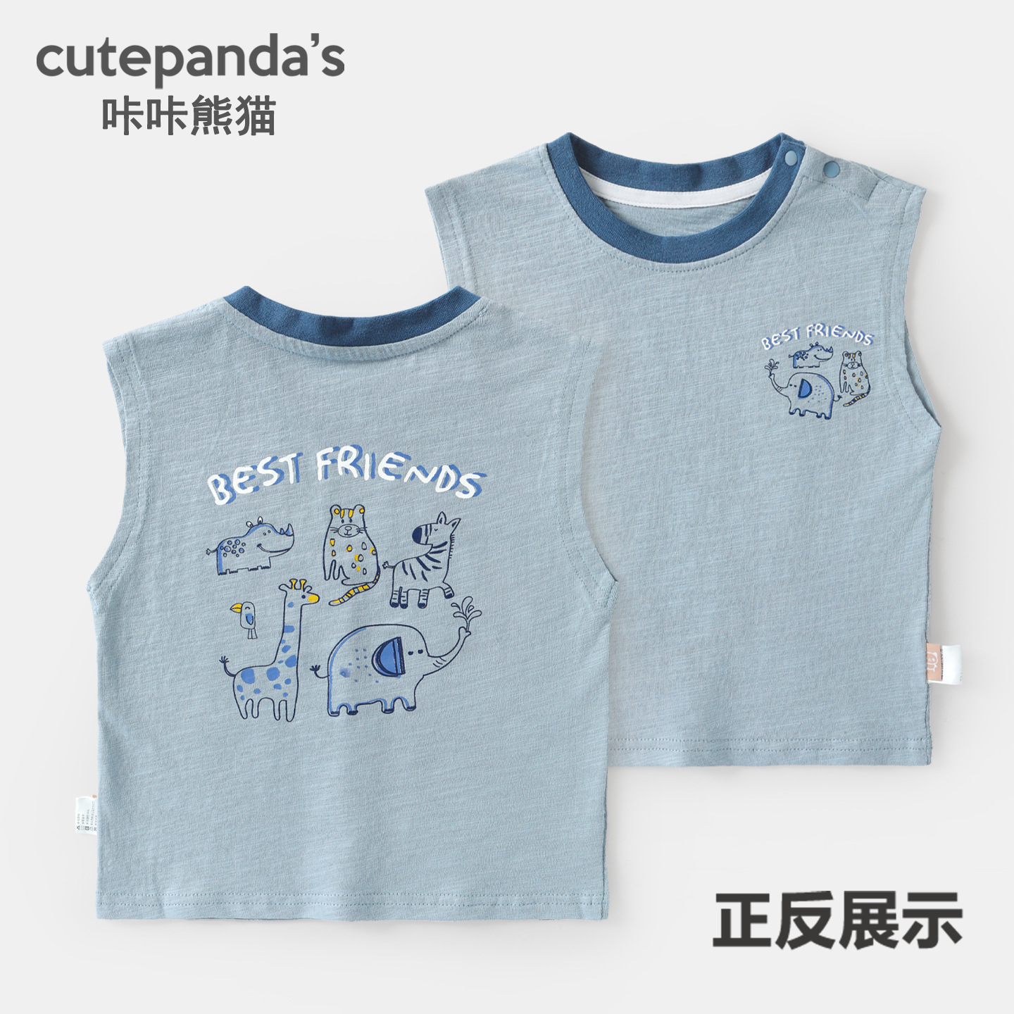 Kaka Panda 어린이 조끼 소년 민소매 티셔츠 소녀 여름 캐주얼 탑 아기 여름 옷 아기 아동복스토어 가기
