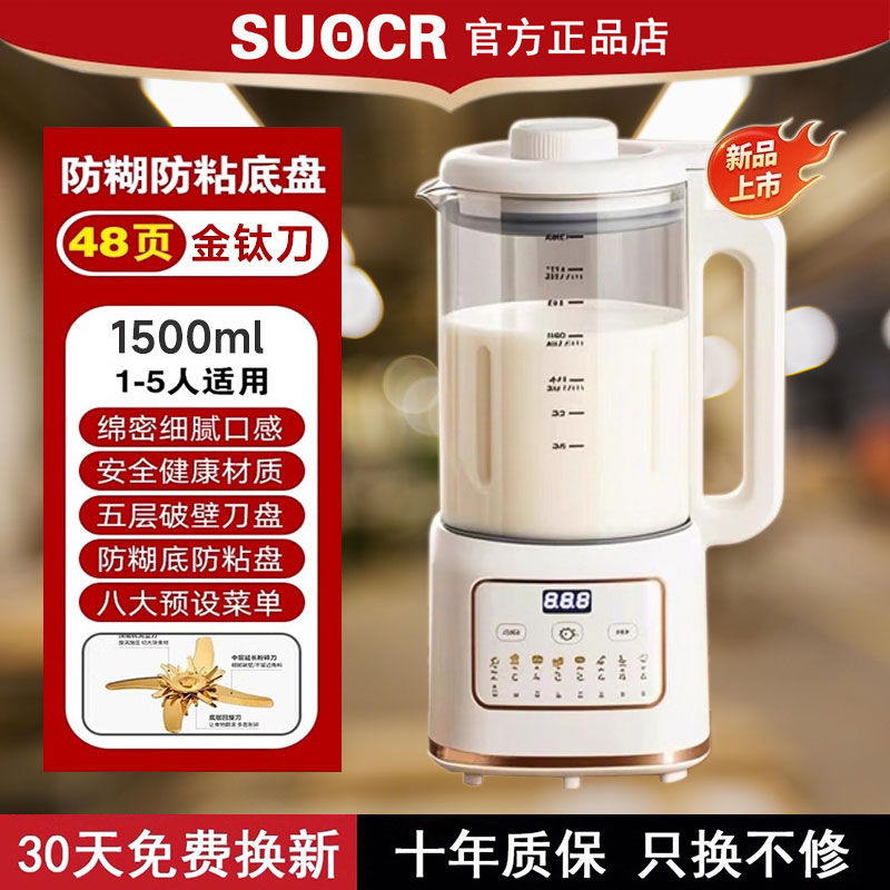 • 스탠다드 모델 1500ml [48잎 스테인리스 칼 + 세라믹 글레이즈 방지 섀시] 건두 직접 분쇄_조리 없음, 필터링 없음_완전 조리 베이스_