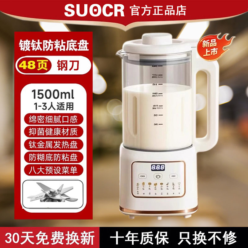 • 업그레이드 모델 1500ml [48잎 스테인리스 칼 + 티타늄 김서림 방지 및 항균 섀시] 건두 직접 분쇄_조리 없음, 필터링 없음_완전 조리 베이스
