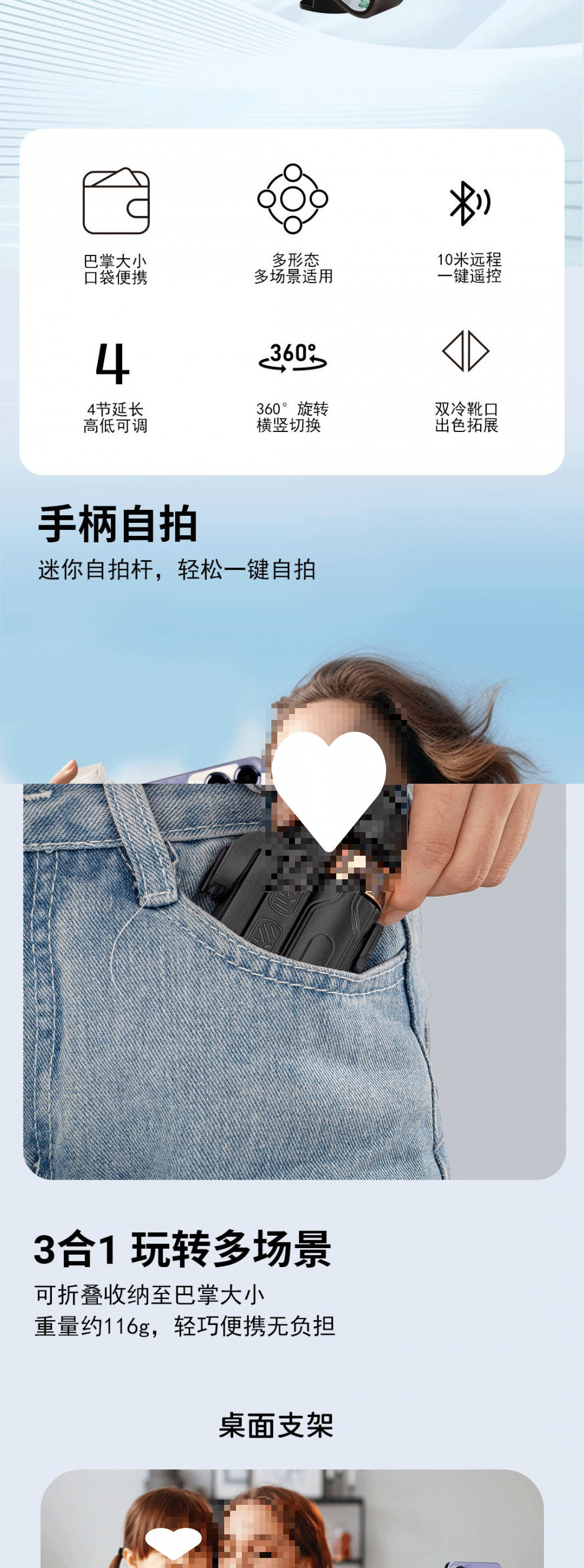 신제품 - 여행용 초소형 셀카봉, 휴대용 보관함, 바닥 스탠딩 4각대, 휴대폰 사진 촬영 도구
