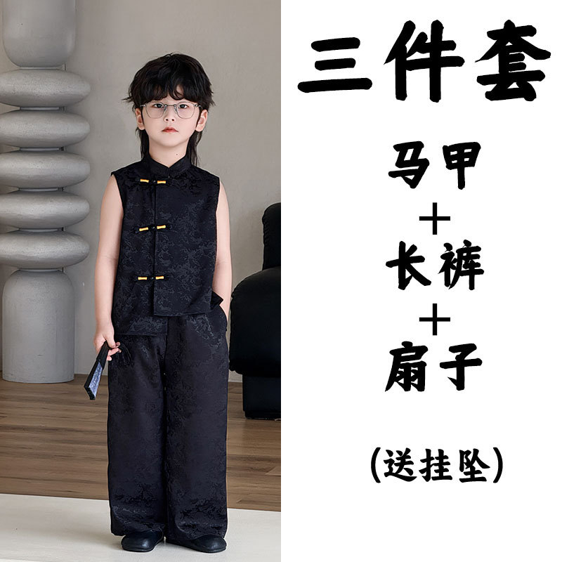 어린이 Hanfu 2025 여름 새 스타일 조끼 복고풍 새로운 중국 스타일 국가 스타일 소년 의류 정장 드롭 배송 유행 스타일