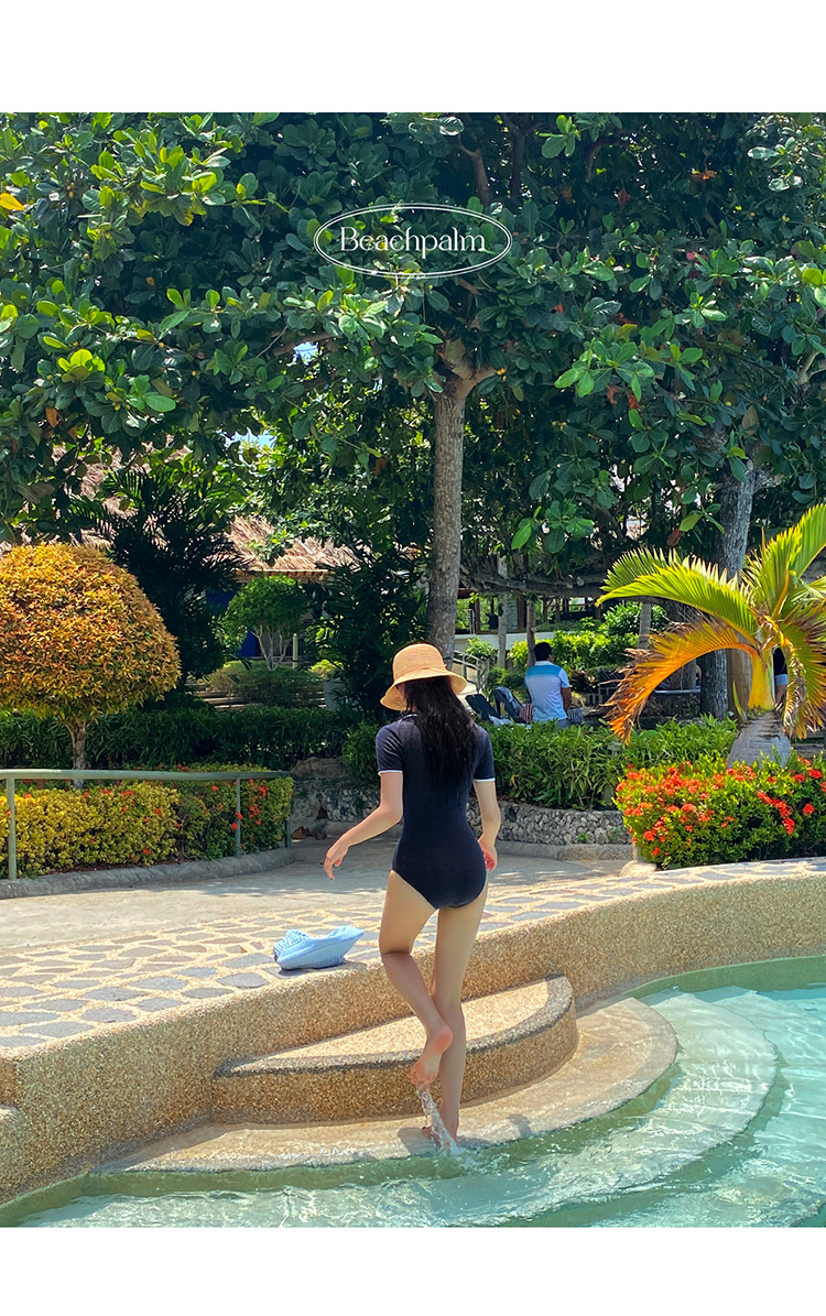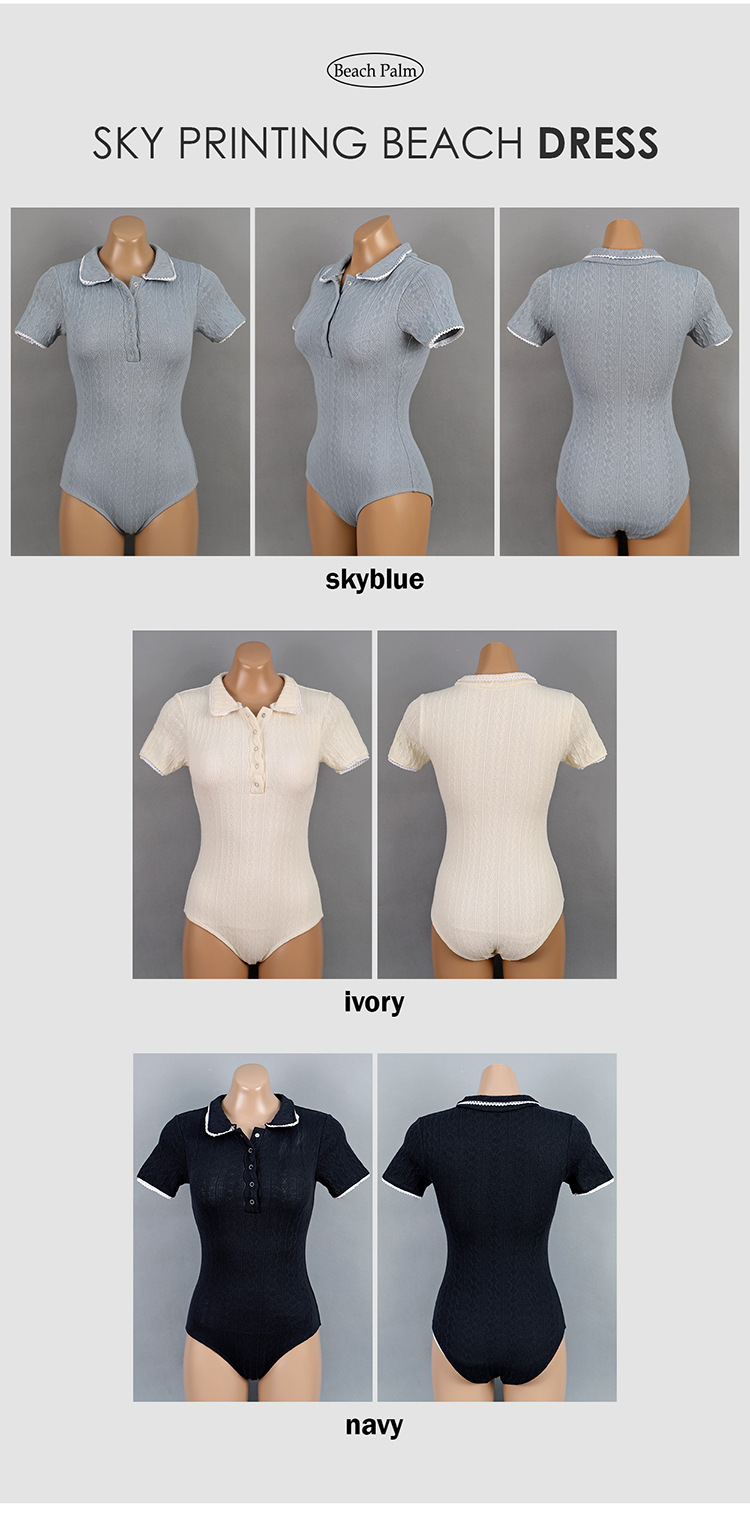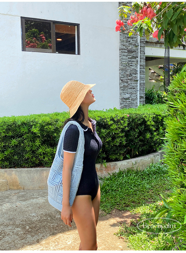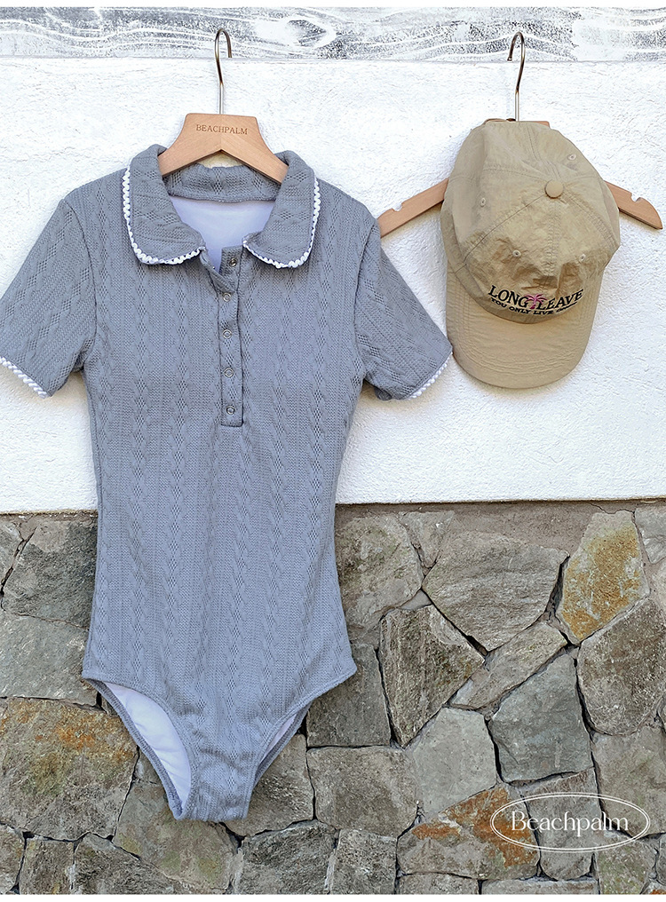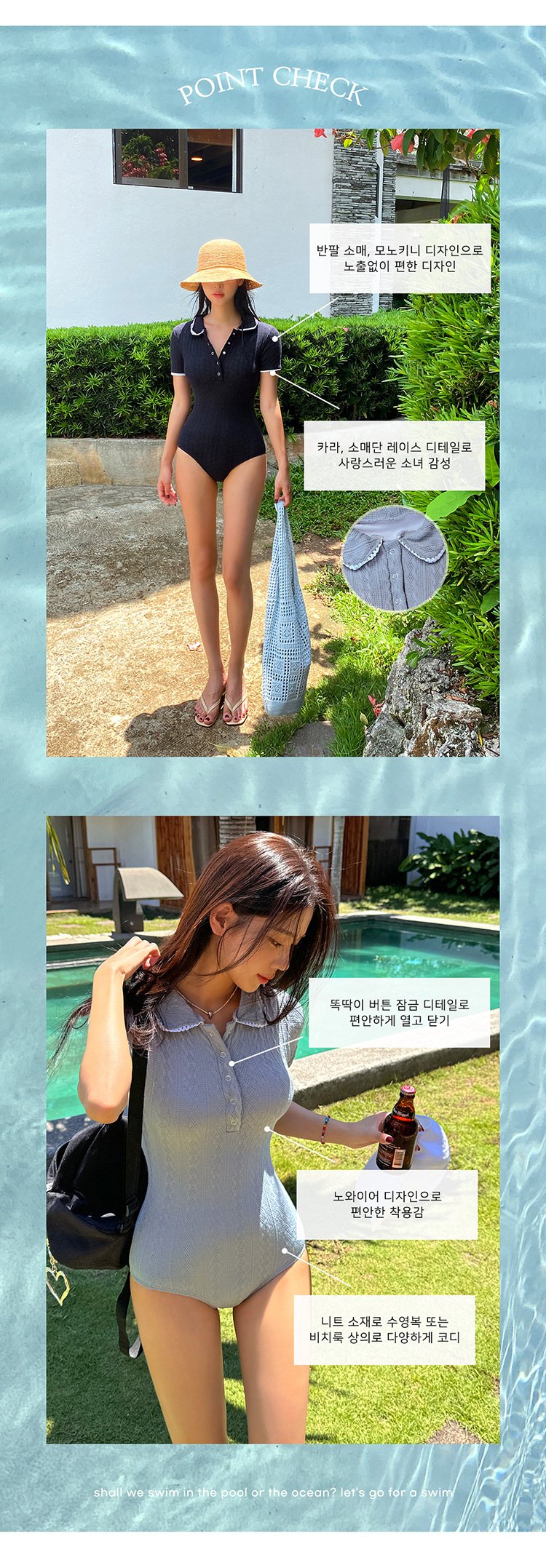 일본과 한국의 새로운 원피스 수영복 솔리드 컬러 니트 폴로 칼라 반팔 섹시 슬리밍 순수 욕망 고급 온천 수영복스토어 가기
