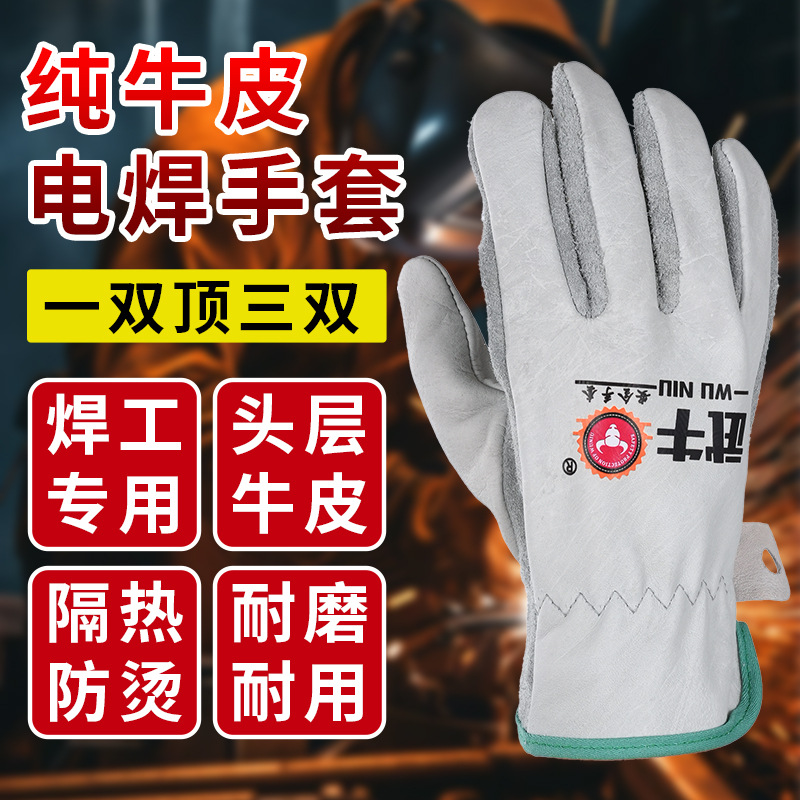 Wuniu 전체 가죽 용접공 장갑, 녹색 가죽 + 내화성 실로 봉제, 초내마모성 및 초부드러운 용접공 장갑 도매