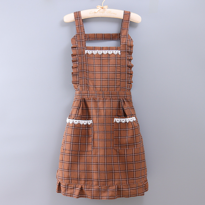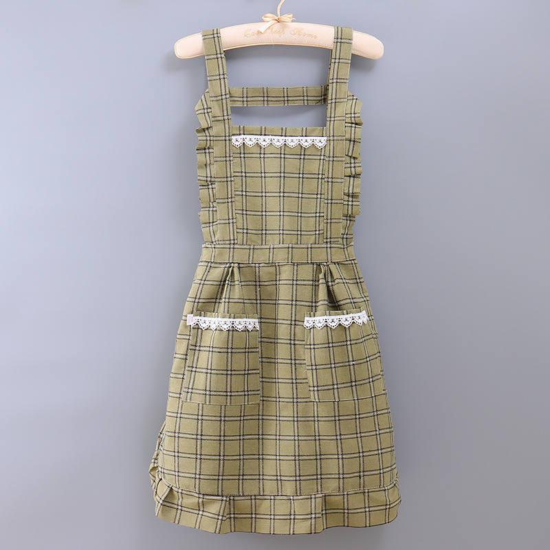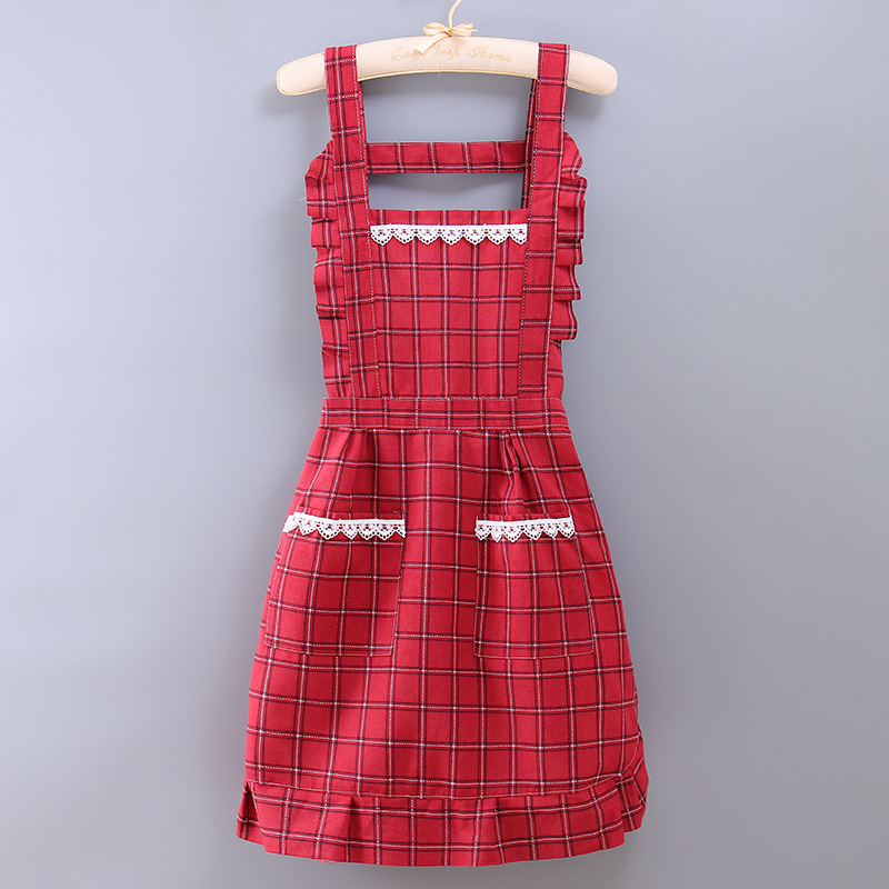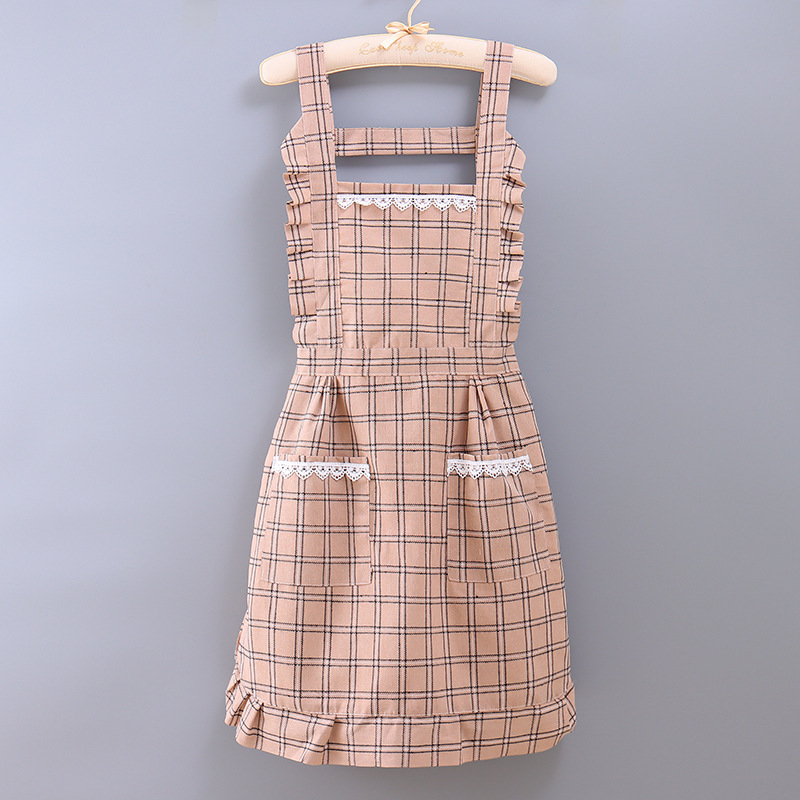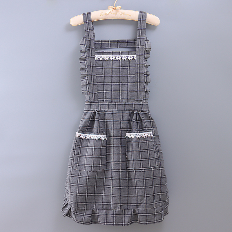 심플한 격자 무늬 어깨 끈 앞치마 홈 주방 방수 여성 앞치마 커피 숍 케이크 가게 방오 작업복
