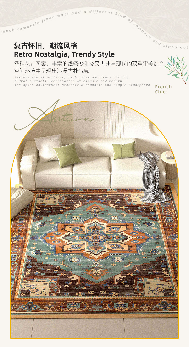 아마존 레트로 페르시아 거실 카펫 모조 캐시미어 인쇄 접이식 세탁 가능한 소파 커피 테이블 침실 침대 옆 담요스토어 가기