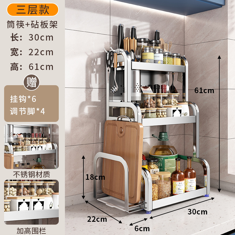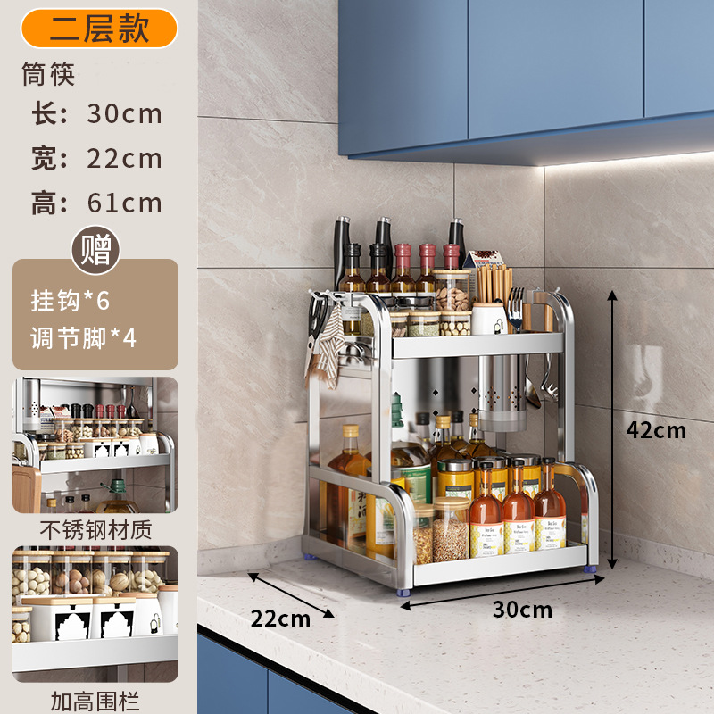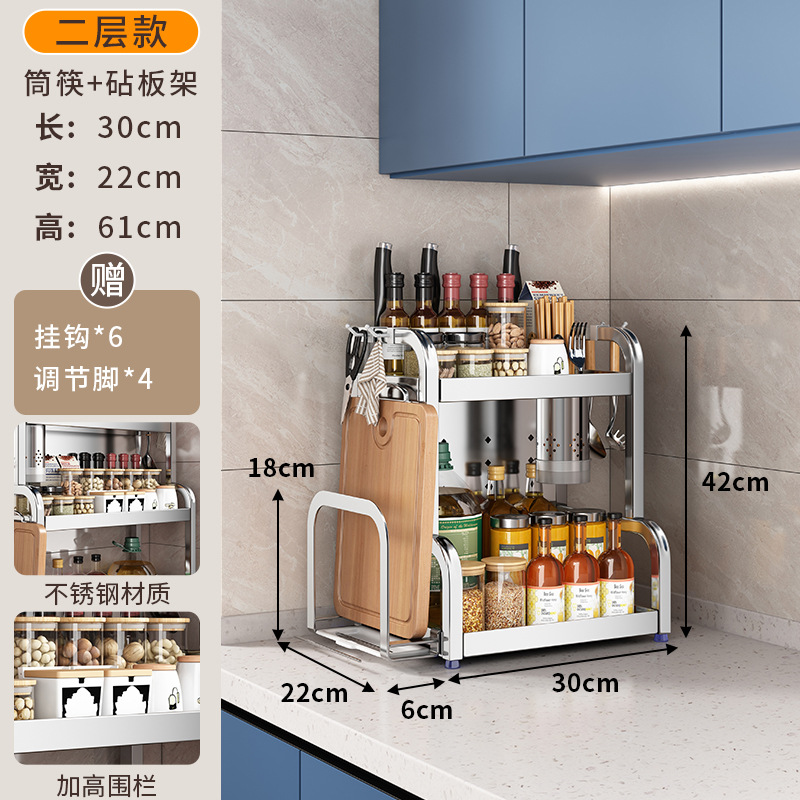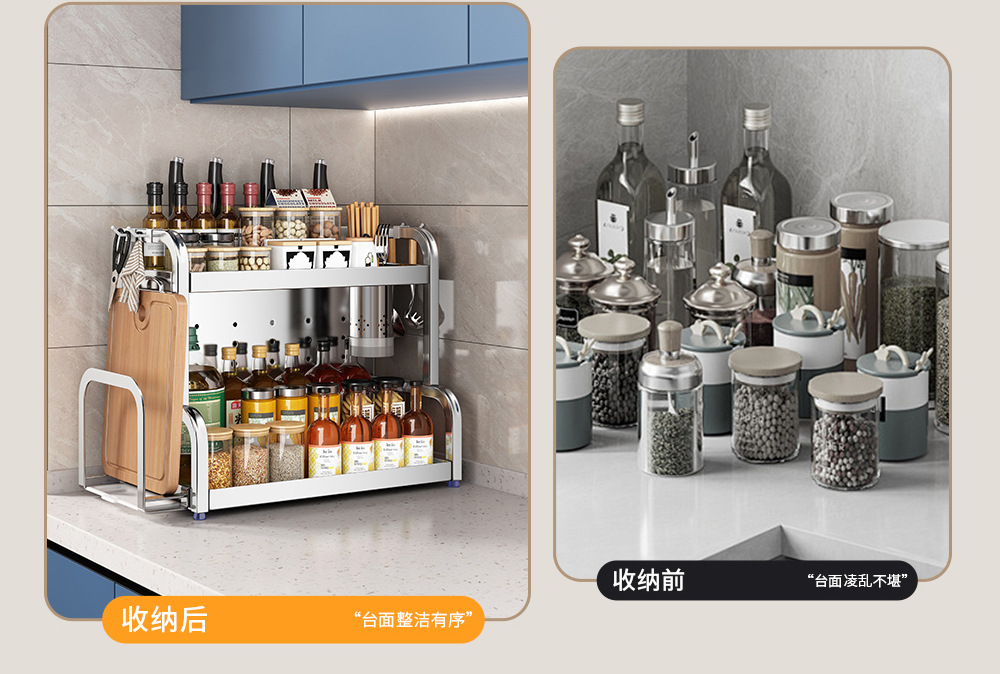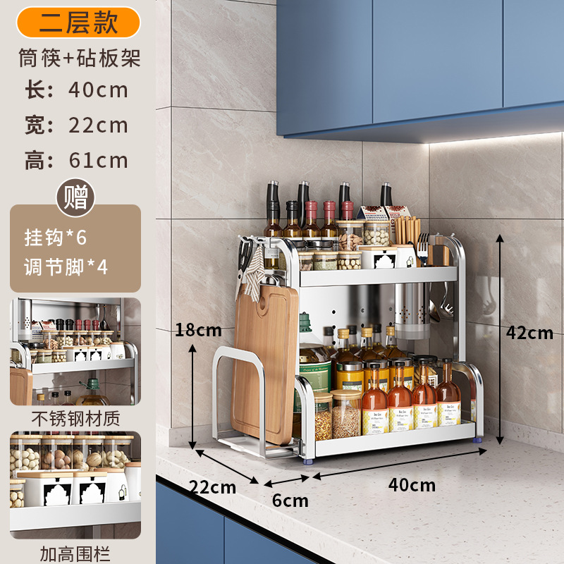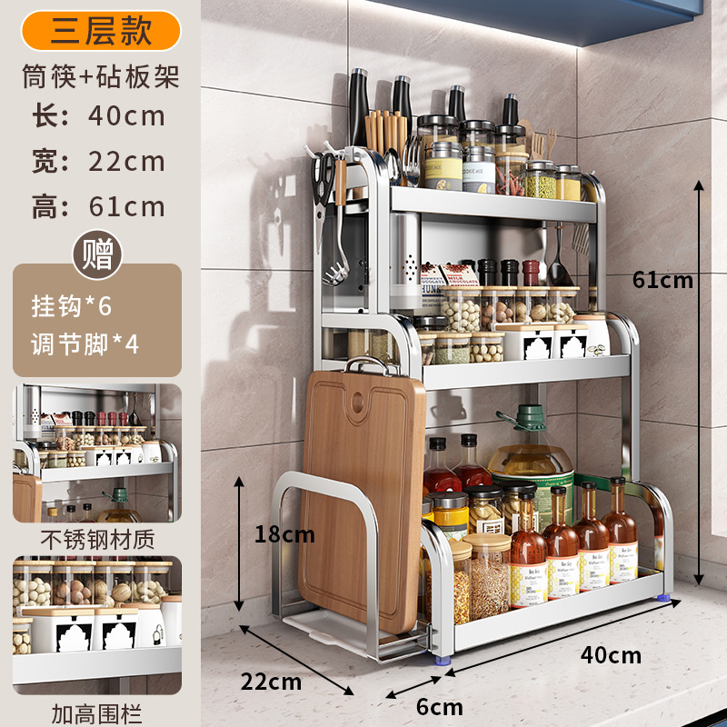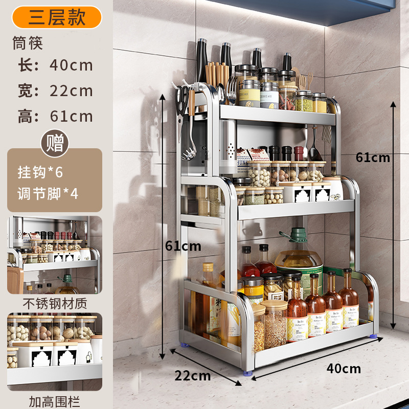 스테인리스 주방 수납 선반, 조리대에 기름통, 양념통, 칼, 젓가락 등을 다층으로 보관할 수 있는 조미료 수납 선반, 칼꽂이스토어 가기