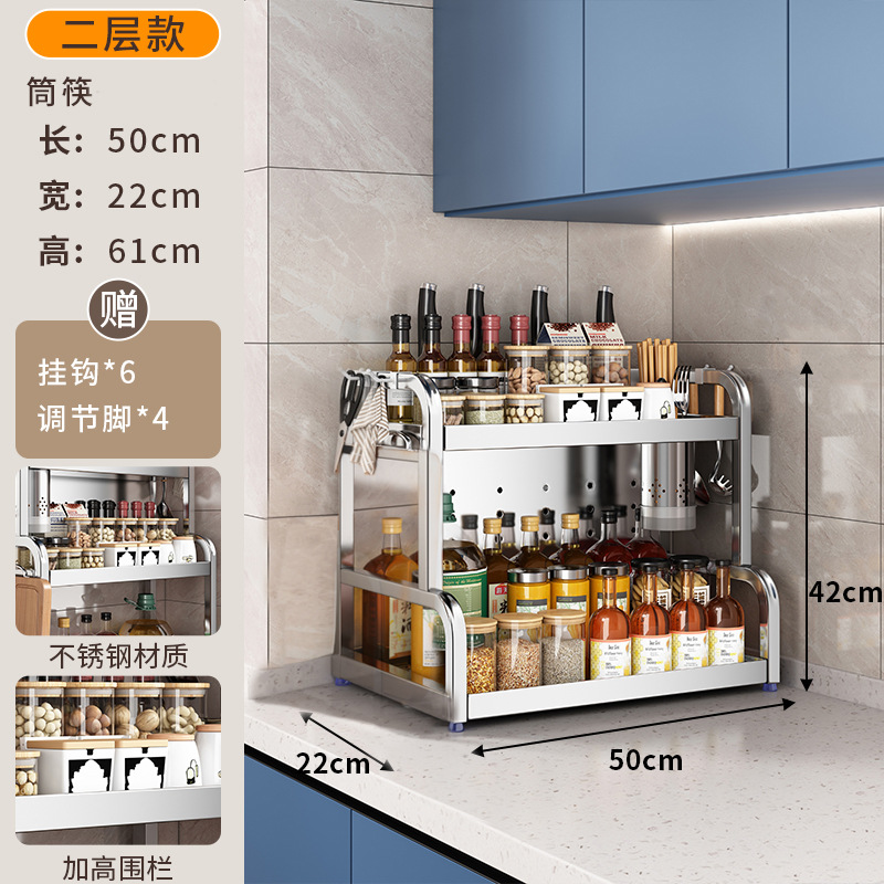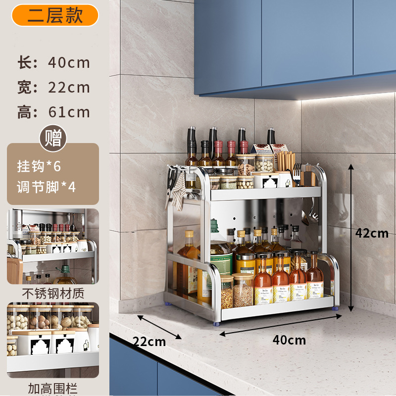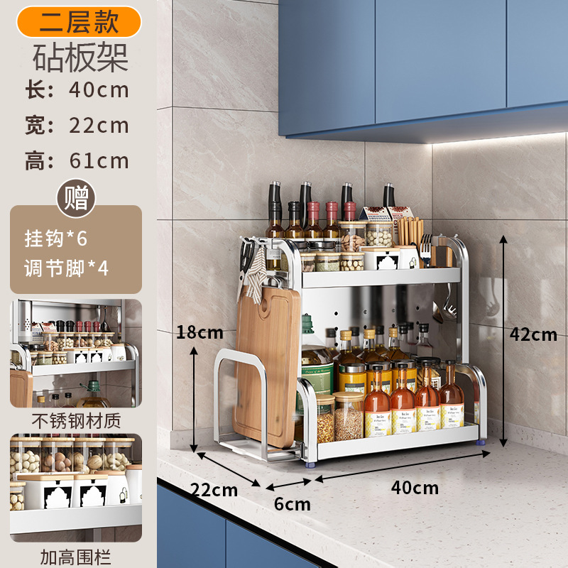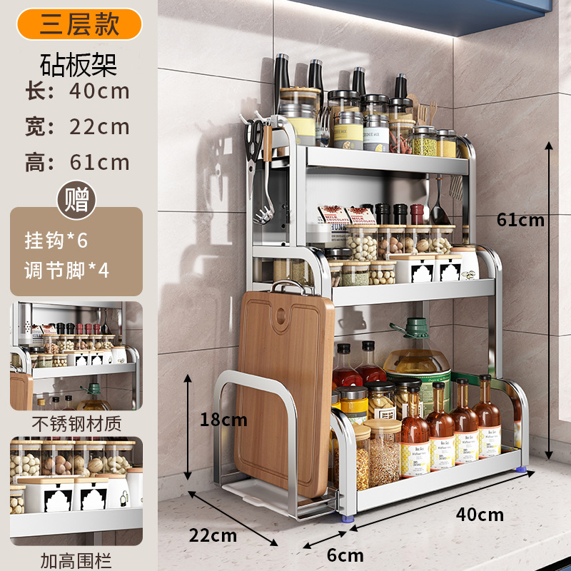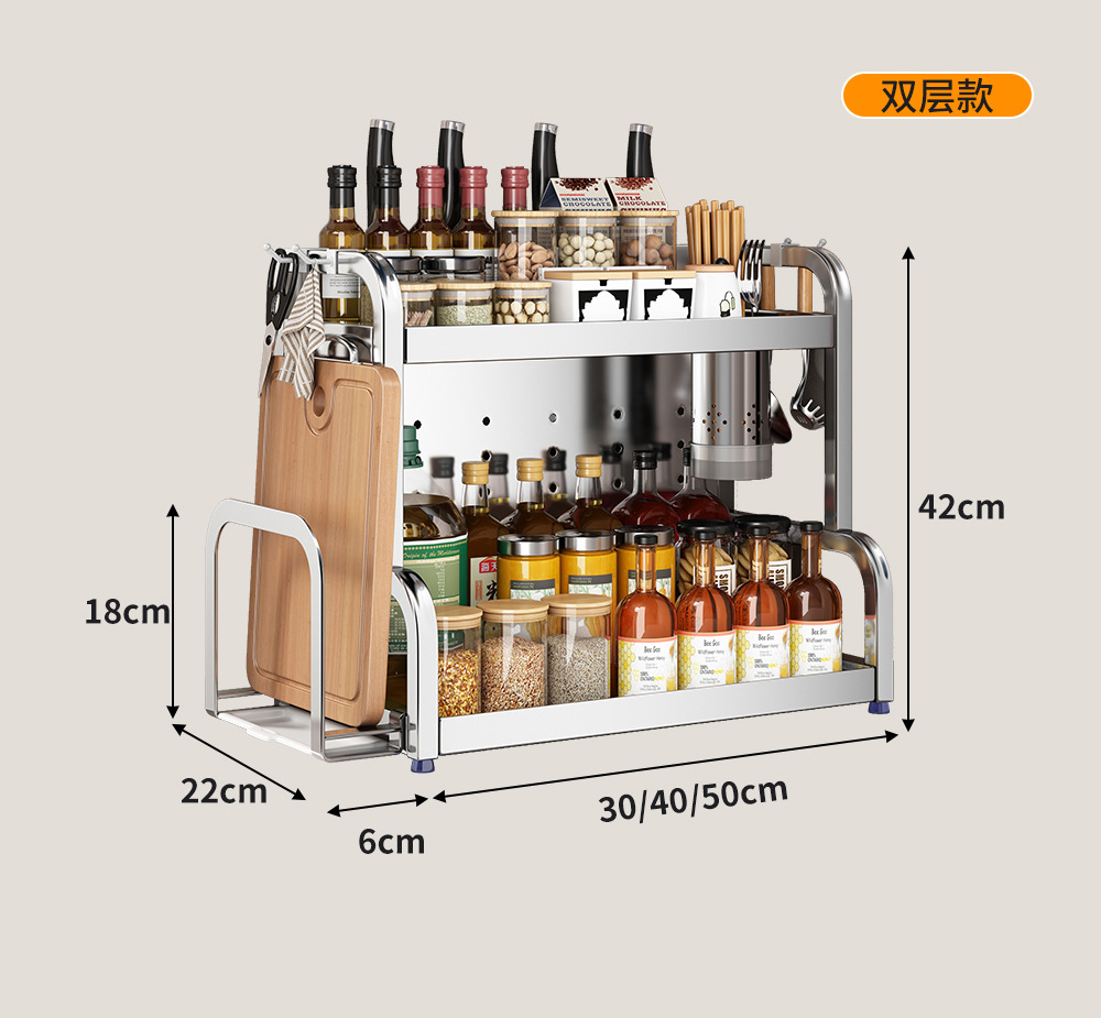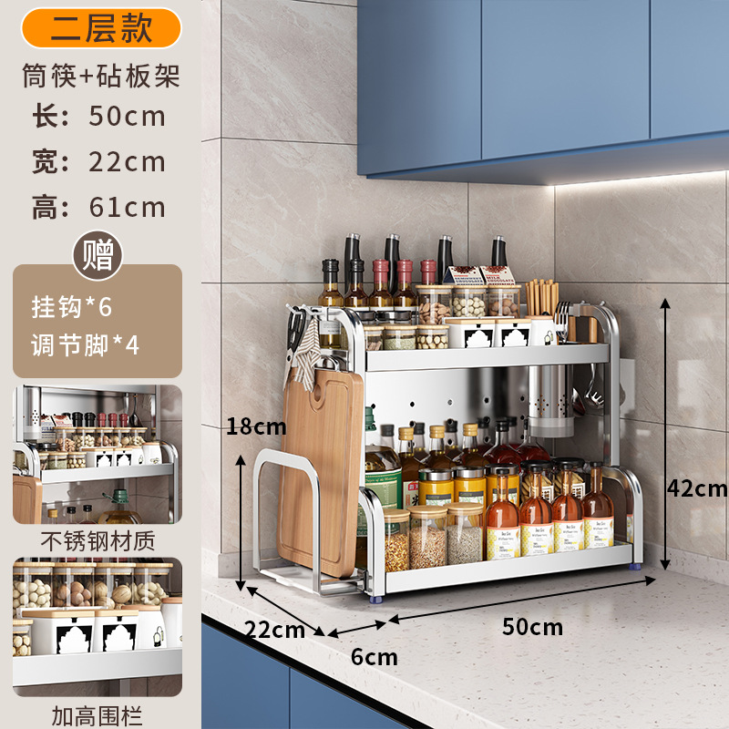 스테인리스 주방 수납 선반, 조리대에 기름통, 양념통, 칼, 젓가락 등을 다층으로 보관할 수 있는 조미료 수납 선반, 칼꽂이스토어 가기