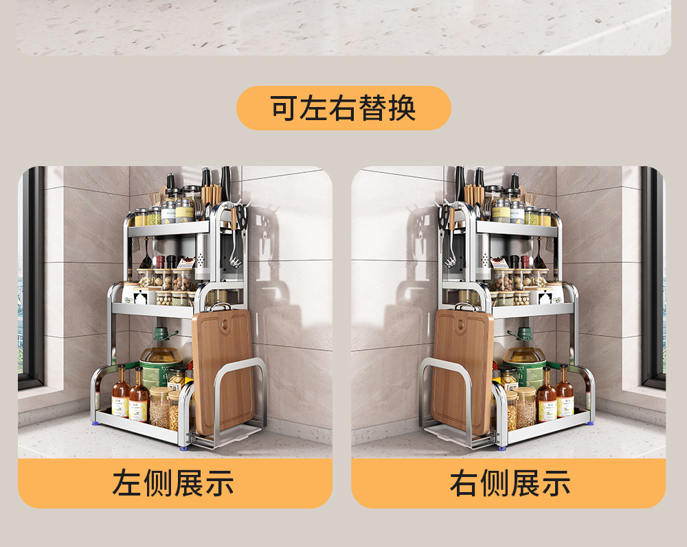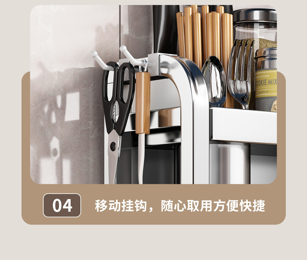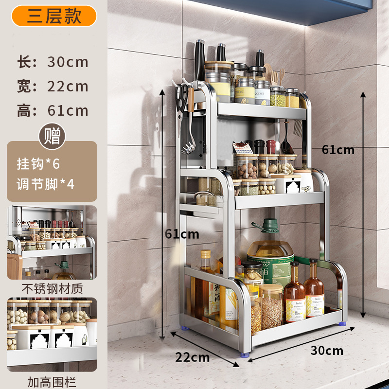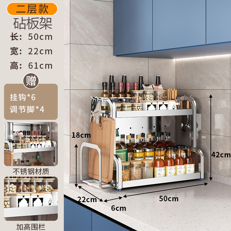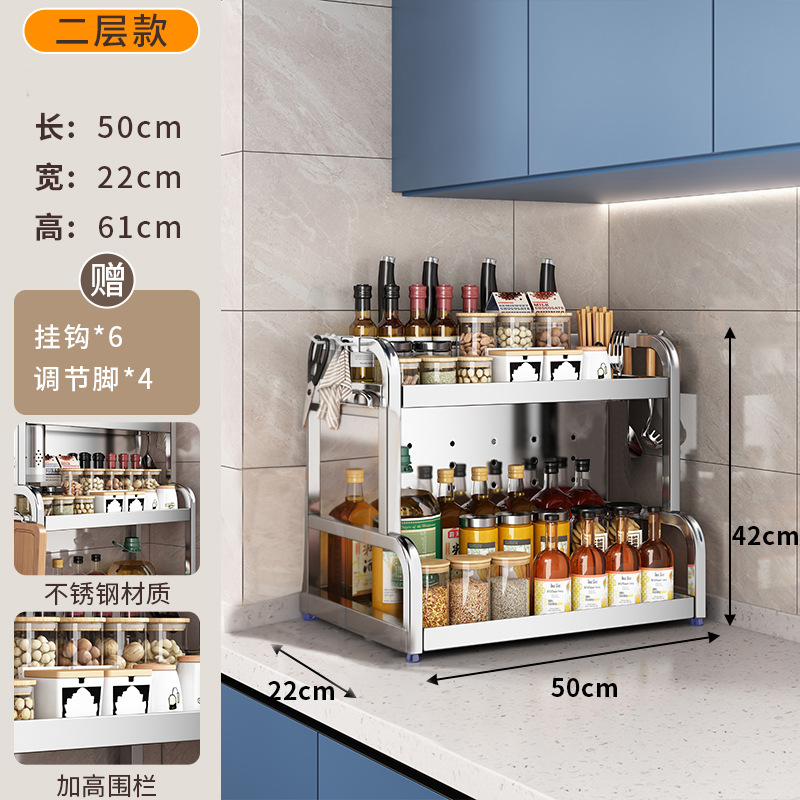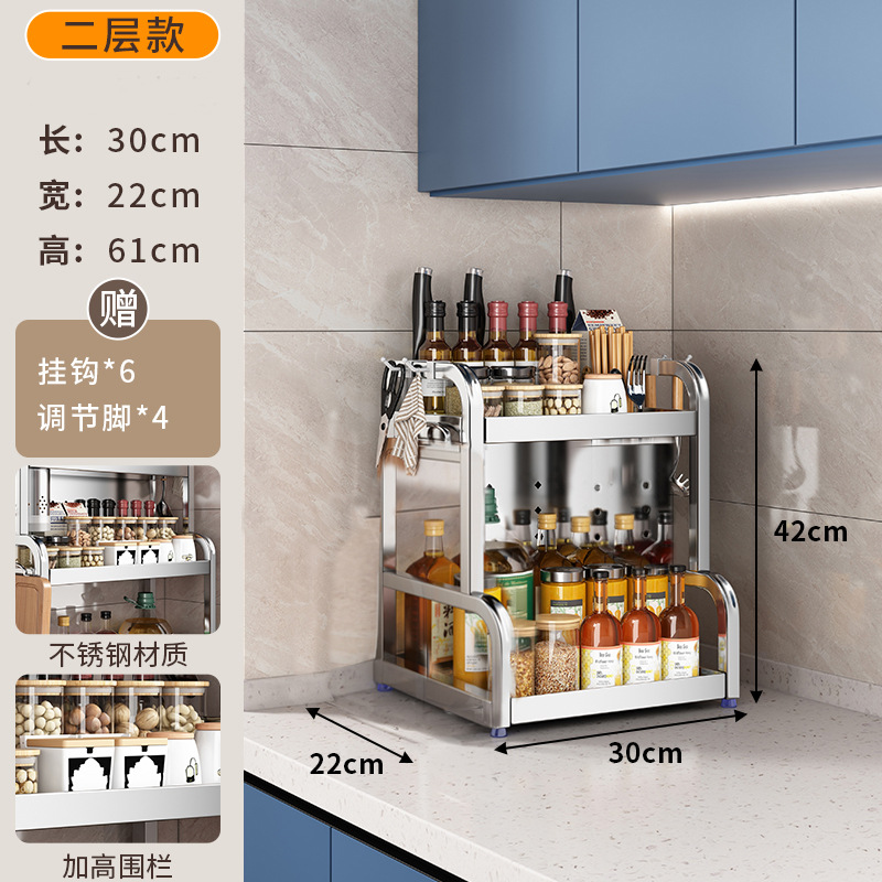 스테인리스 주방 수납 선반, 조리대에 기름통, 양념통, 칼, 젓가락 등을 다층으로 보관할 수 있는 조미료 수납 선반, 칼꽂이스토어 가기