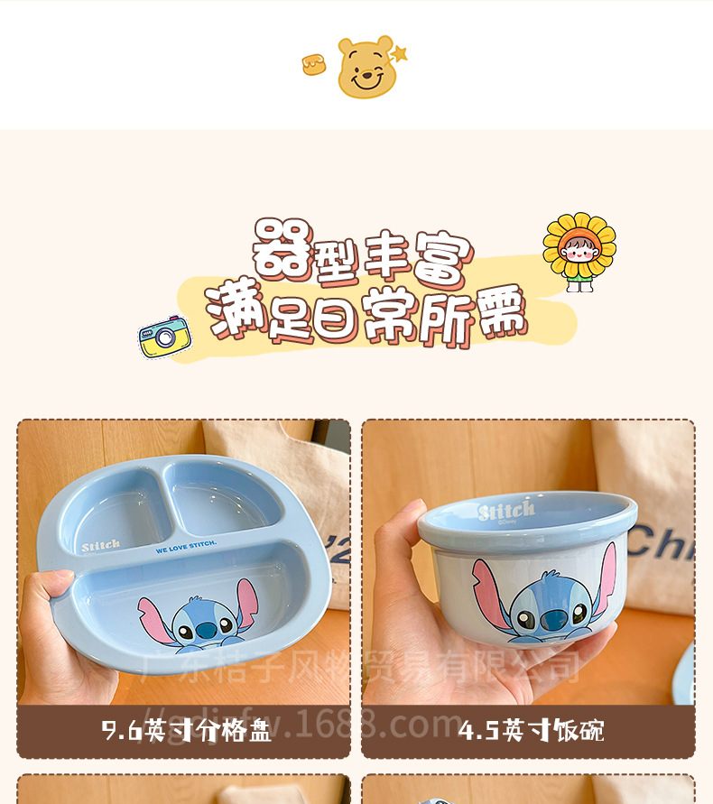 스티치 아침 식사 접시 어린이 저녁 식사 접시 가정용 2025 새로운 고가 세라믹 체중 감량 밥 접시 1인용스토어 가기