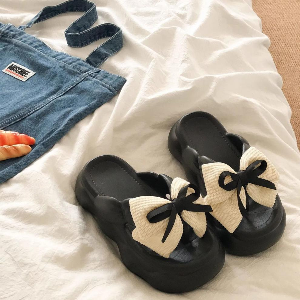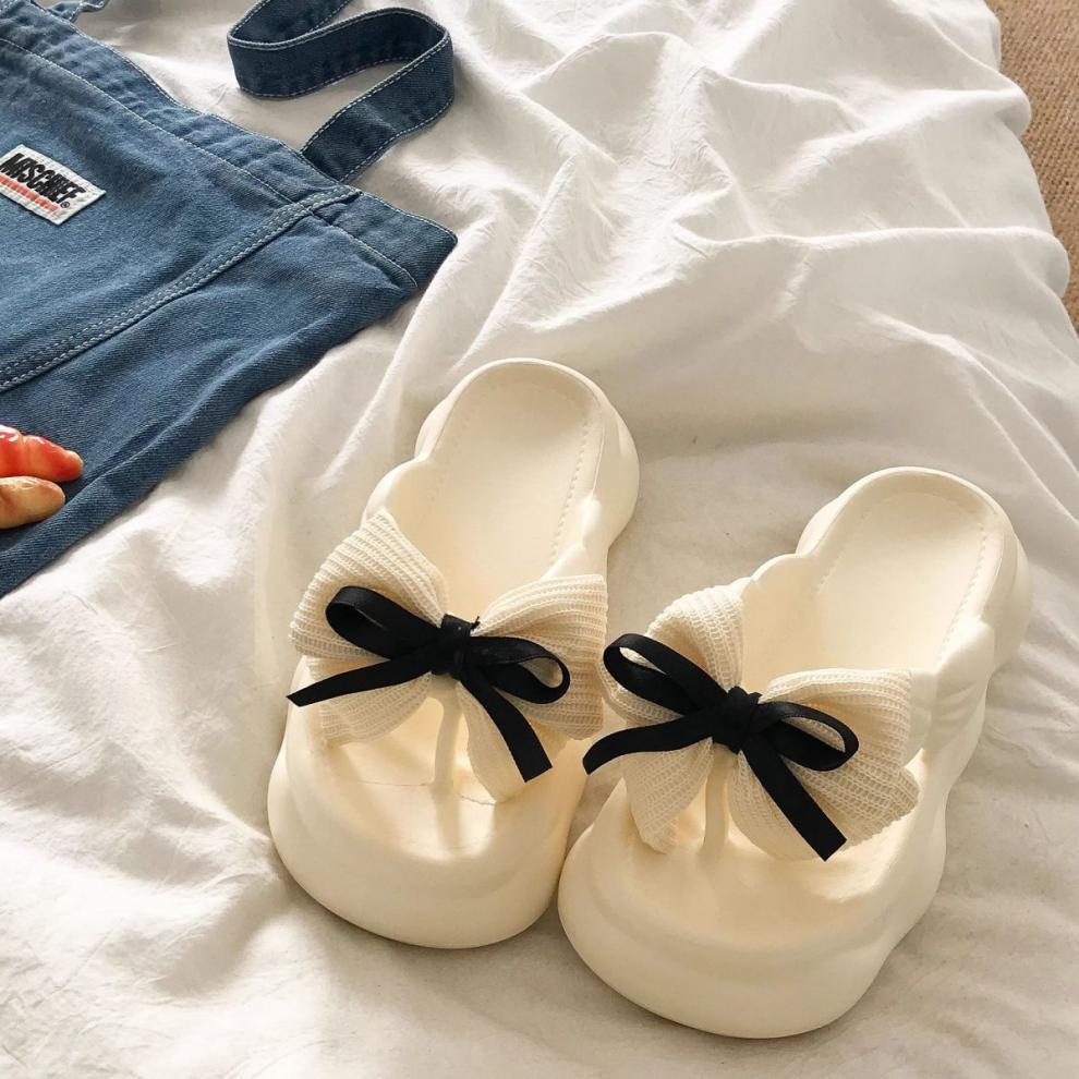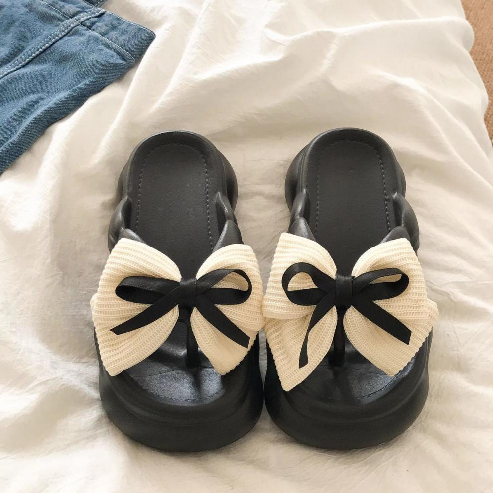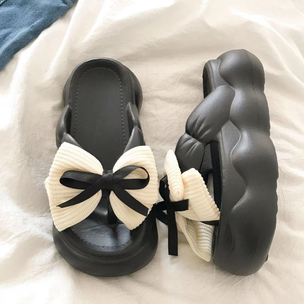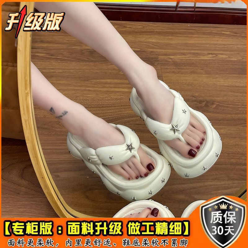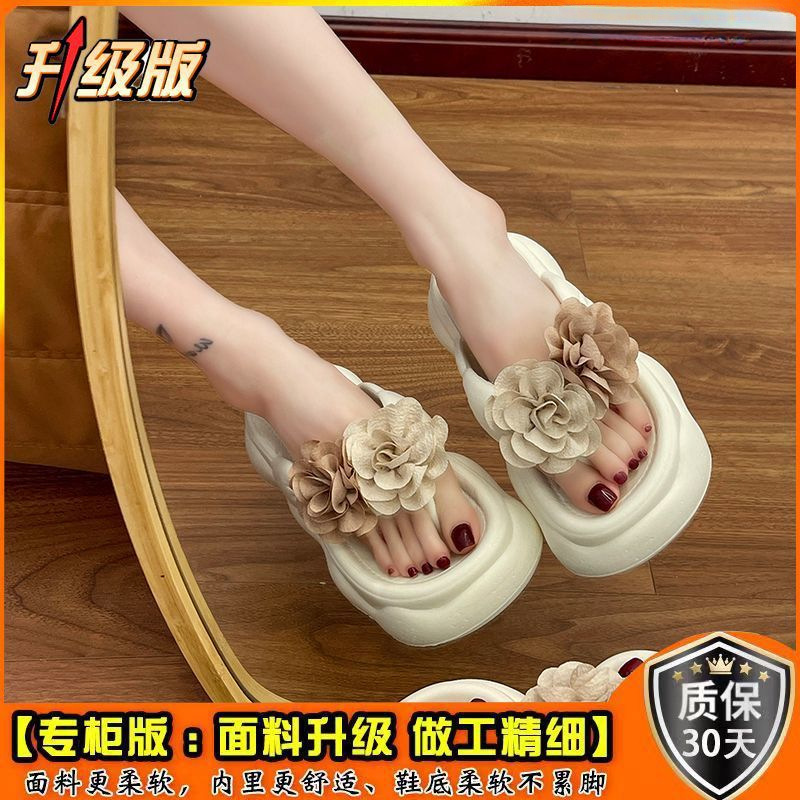 여성을위한 달콤한 요정 스타일 두꺼운 밑창 비치 플립 플롭 여름 새로운 스타일 스커트와 매치 미끄럼 방지 샌들스토어 가기