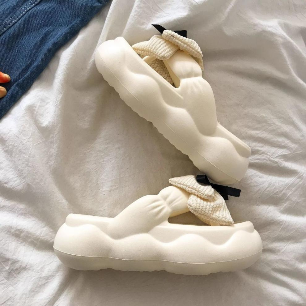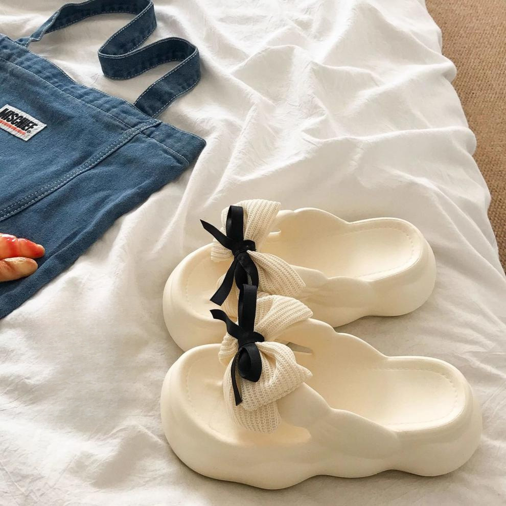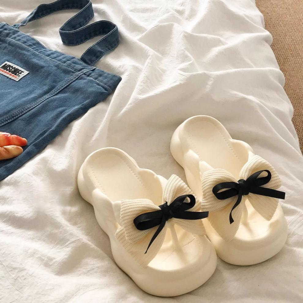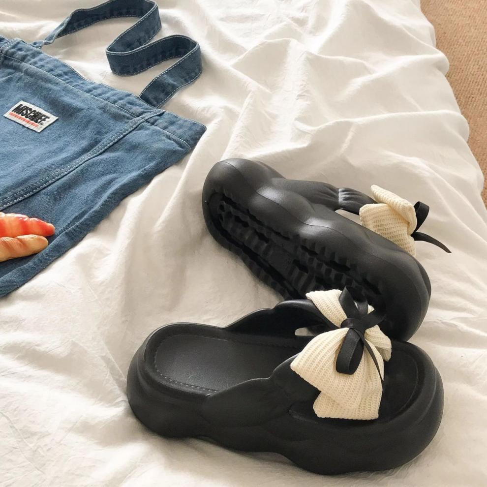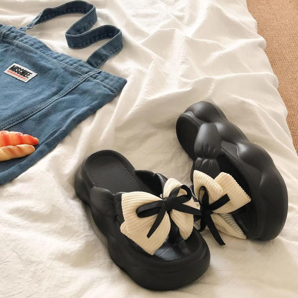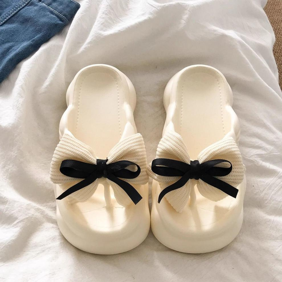 여성을위한 달콤한 요정 스타일 두꺼운 밑창 비치 플립 플롭 여름 새로운 스타일 스커트와 매치 미끄럼 방지 샌들스토어 가기