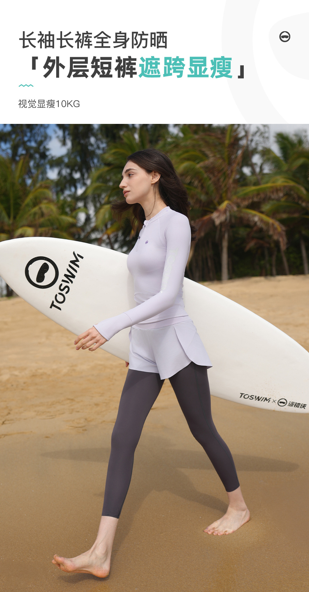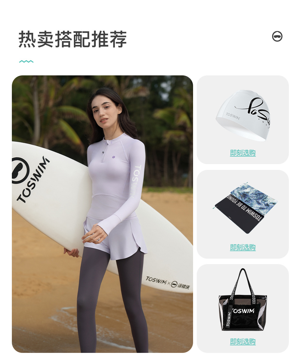TOSWIM 스플릿 수영복 탑 여성용 긴팔 자외선 차단 보수적 슬리밍 수영복 온천 휴가 서핑 슈트 수영복스토어 가기
