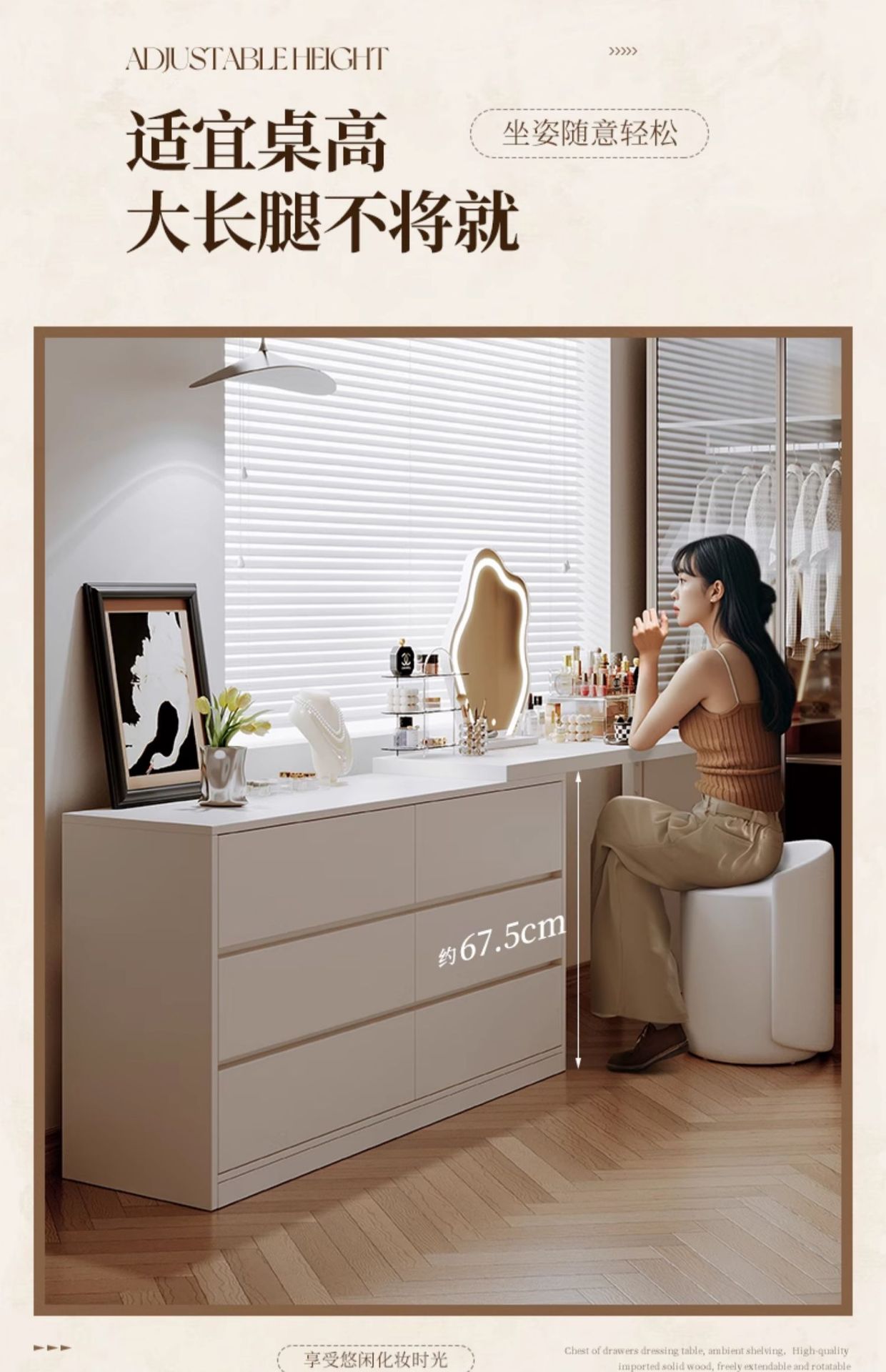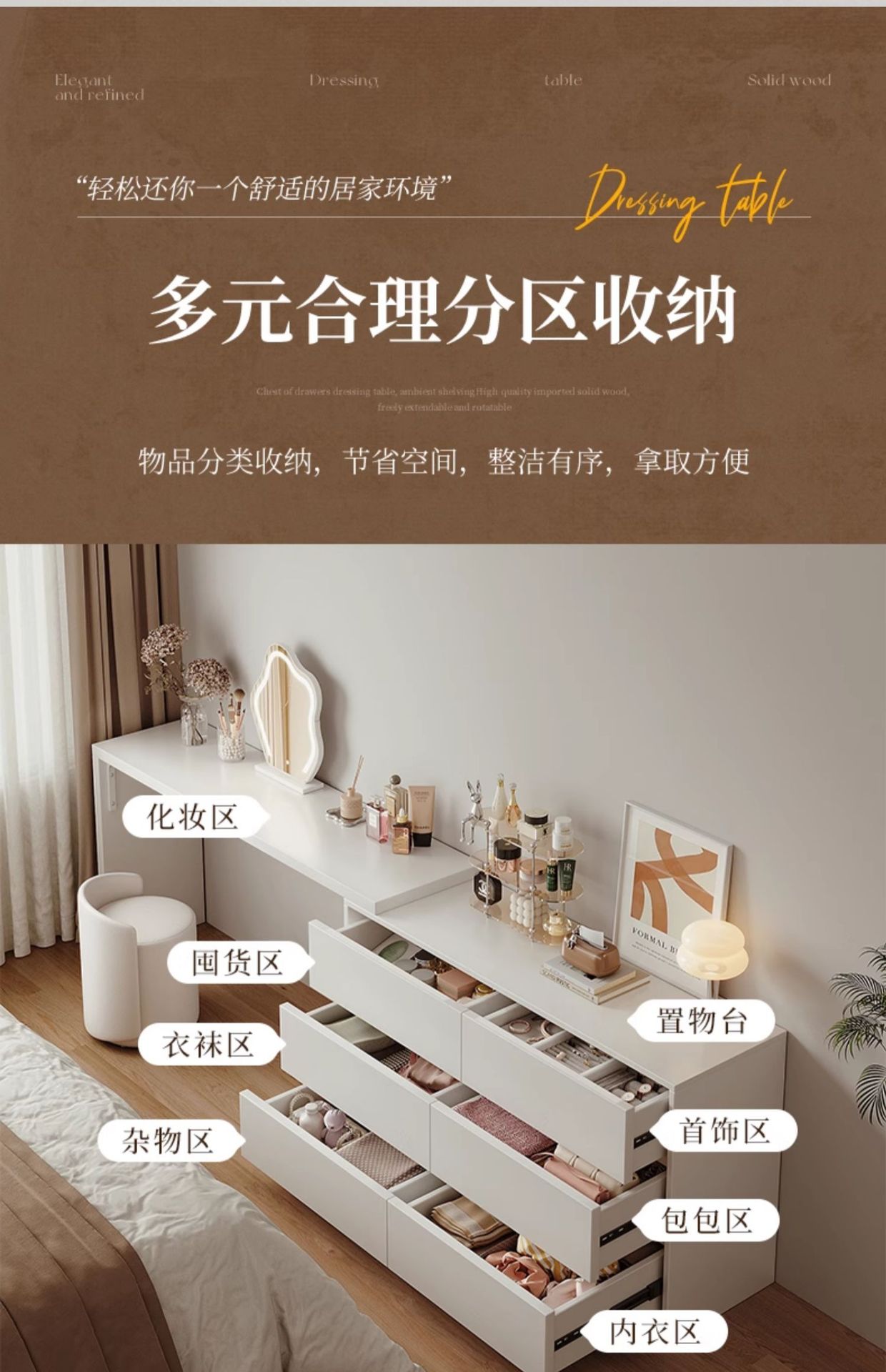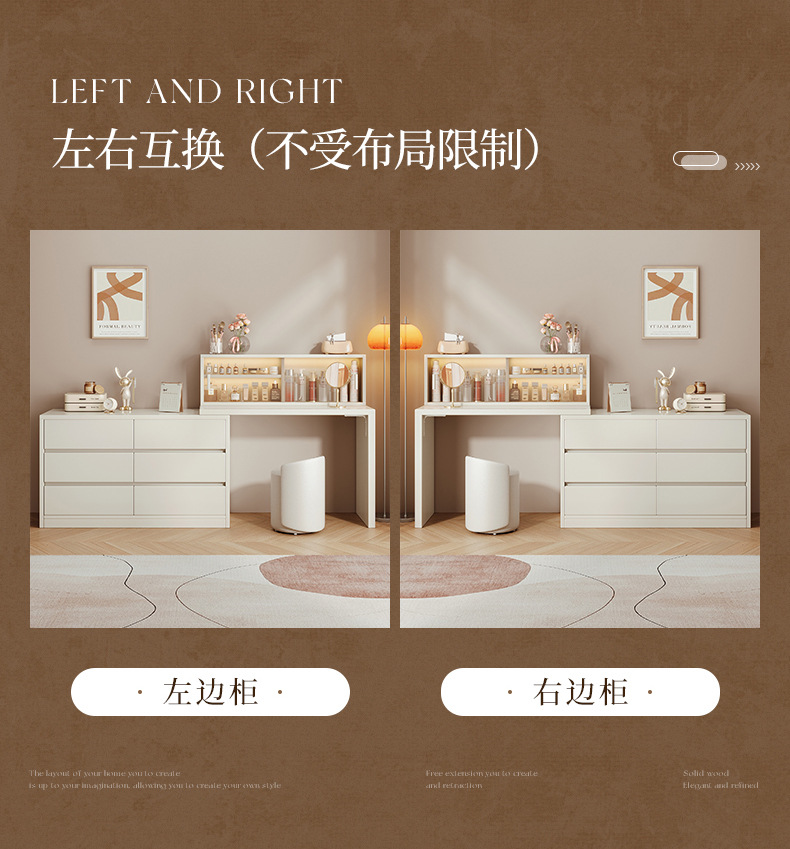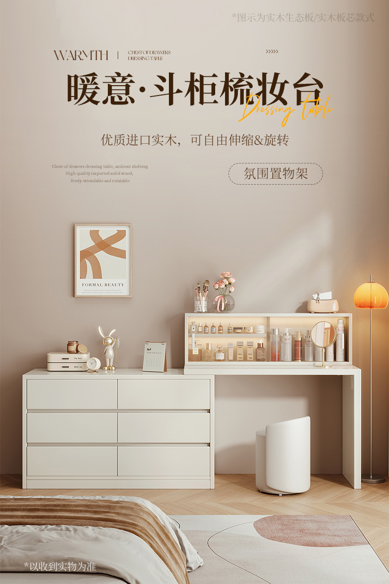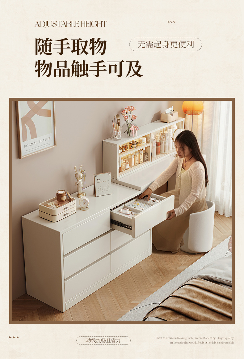 화장대와 서랍장이 결합된 심플하고 모던한 수납장, 침실 화장대, 침대 옆 캐비닛, 컴퓨터 책상, 화장대 수납장