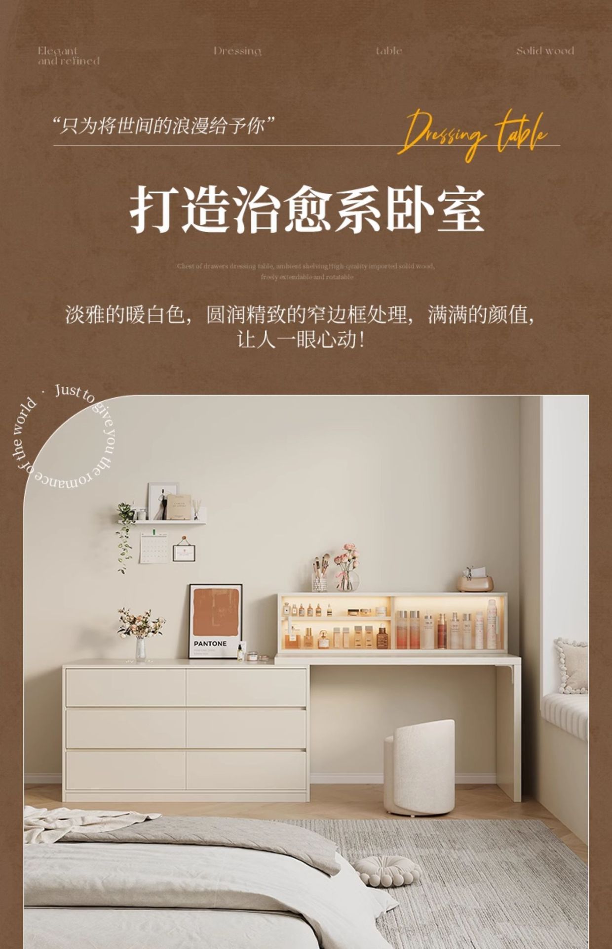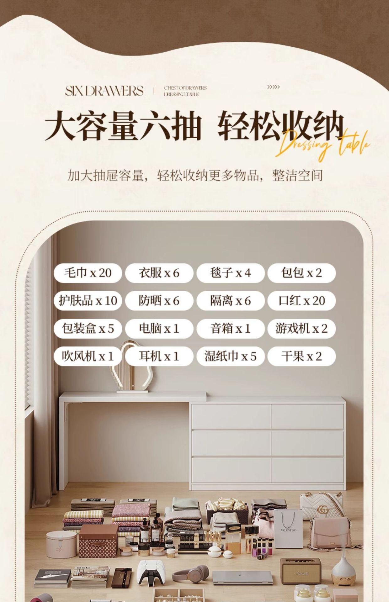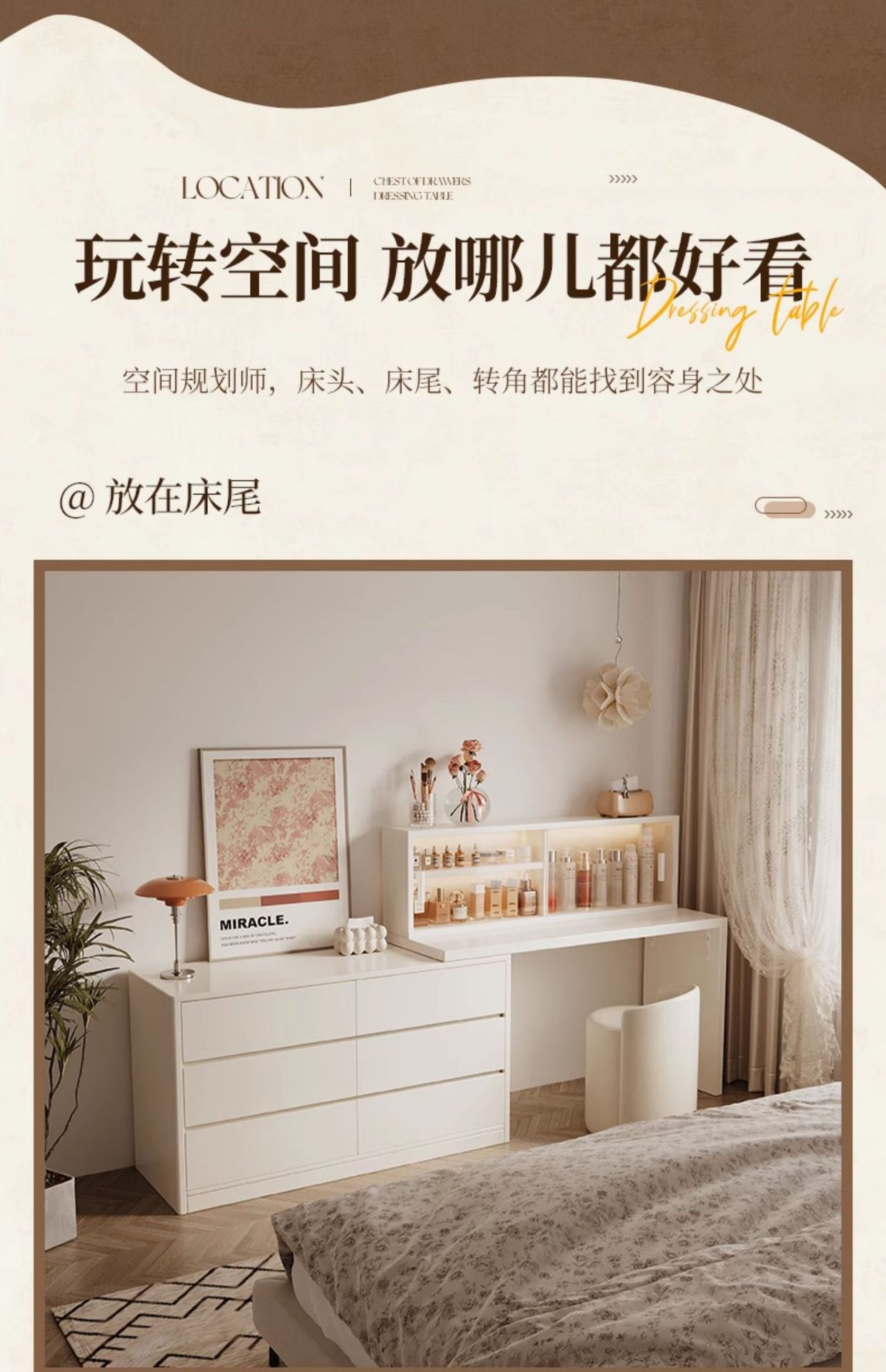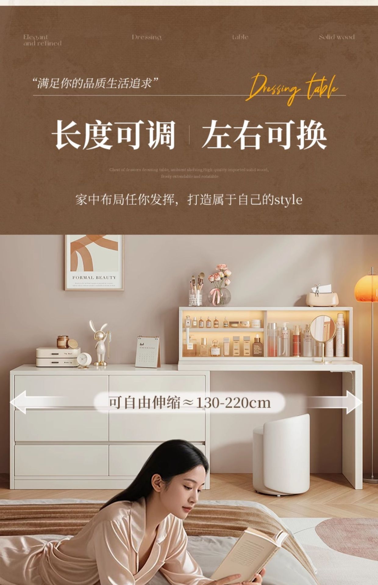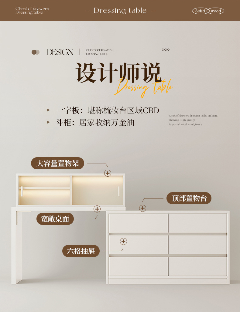화장대와 서랍장이 결합된 심플하고 모던한 수납장, 침실 화장대, 침대 옆 캐비닛, 컴퓨터 책상, 화장대 수납장