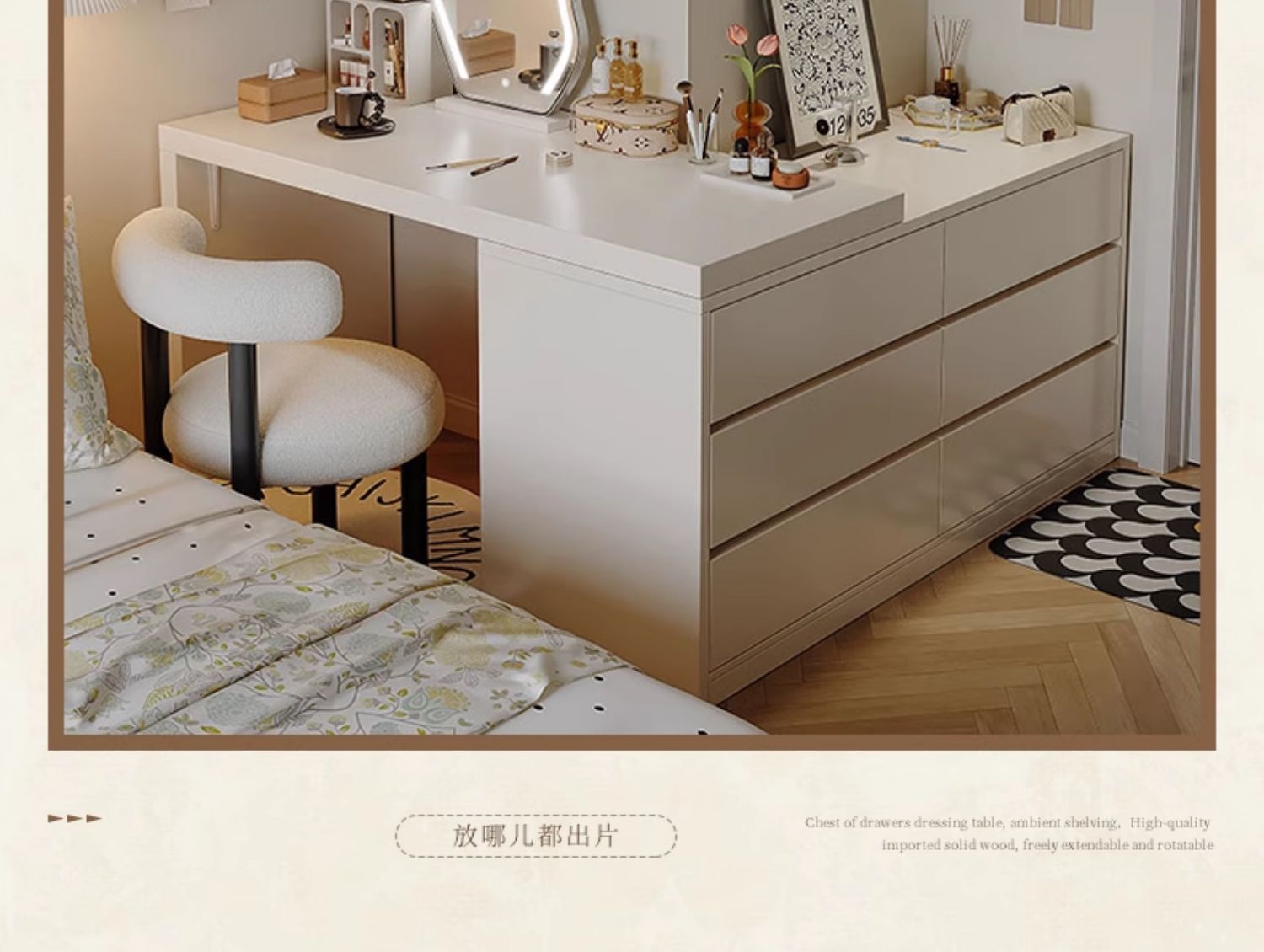 화장대와 서랍장이 결합된 심플하고 모던한 수납장, 침실 화장대, 침대 옆 캐비닛, 컴퓨터 책상, 화장대 수납장스토어 가기