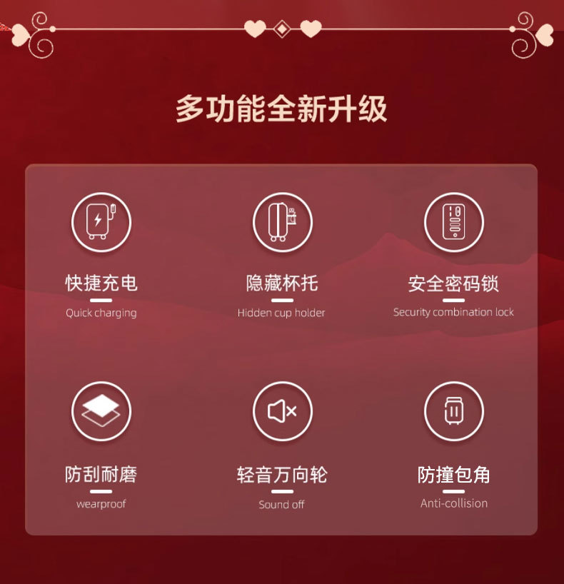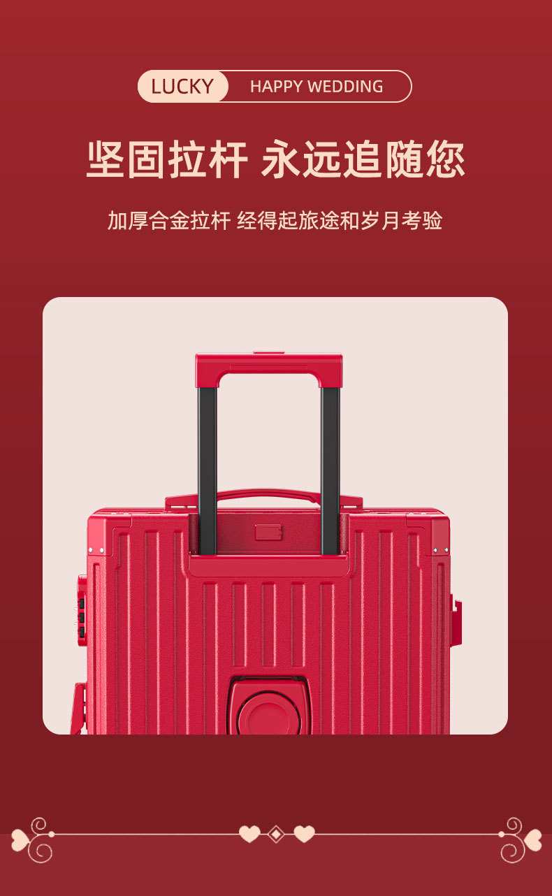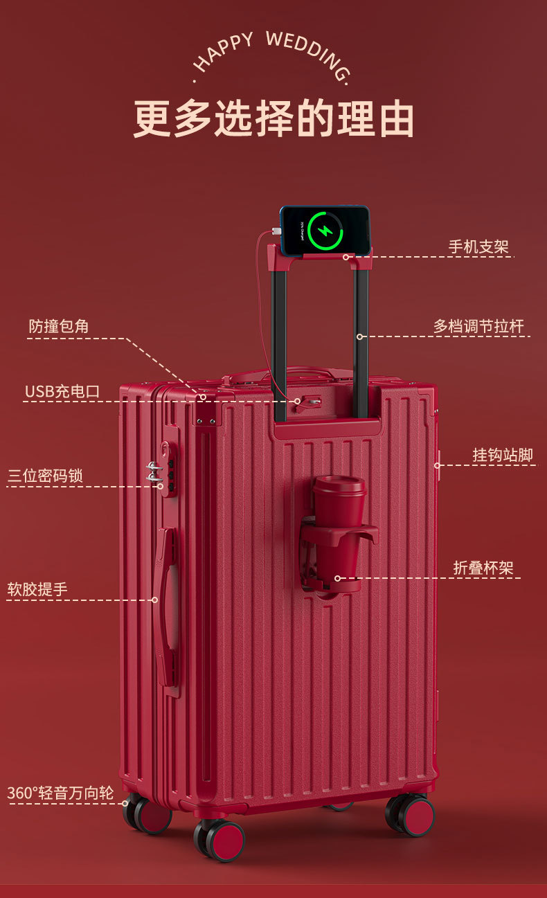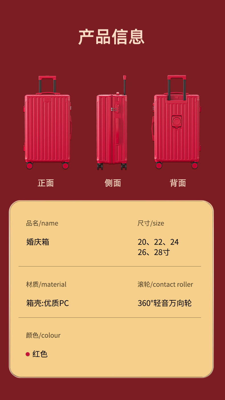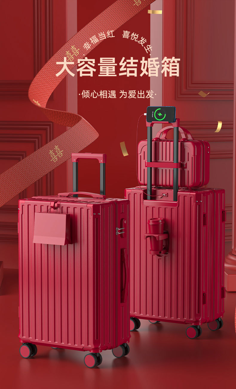 2025 새로운 빨간색 가방 결혼식 선물 상자 웨딩 트롤리 케이스 내구성 범용 휠 축제 가방 강력한스토어 가기