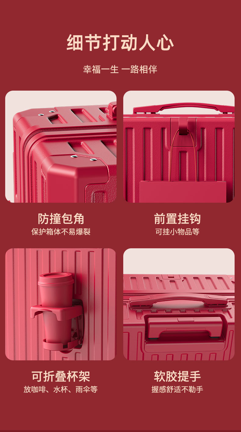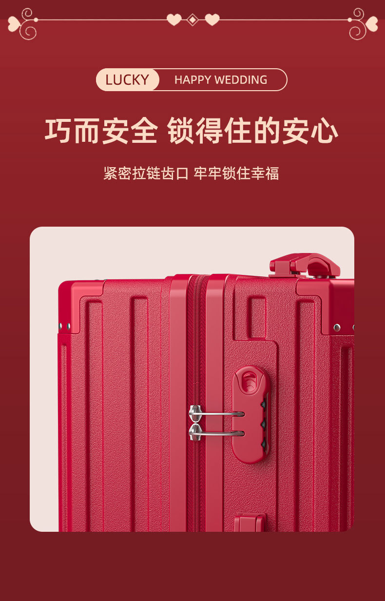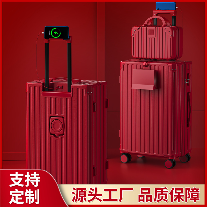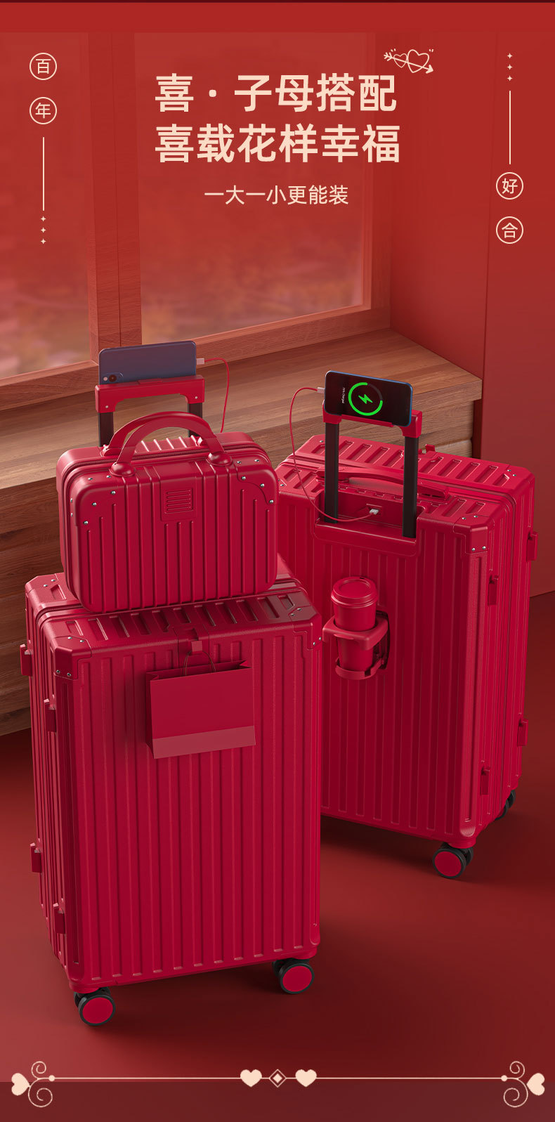 2025 새로운 빨간색 가방 결혼식 선물 상자 웨딩 트롤리 케이스 내구성 범용 휠 축제 가방 강력한