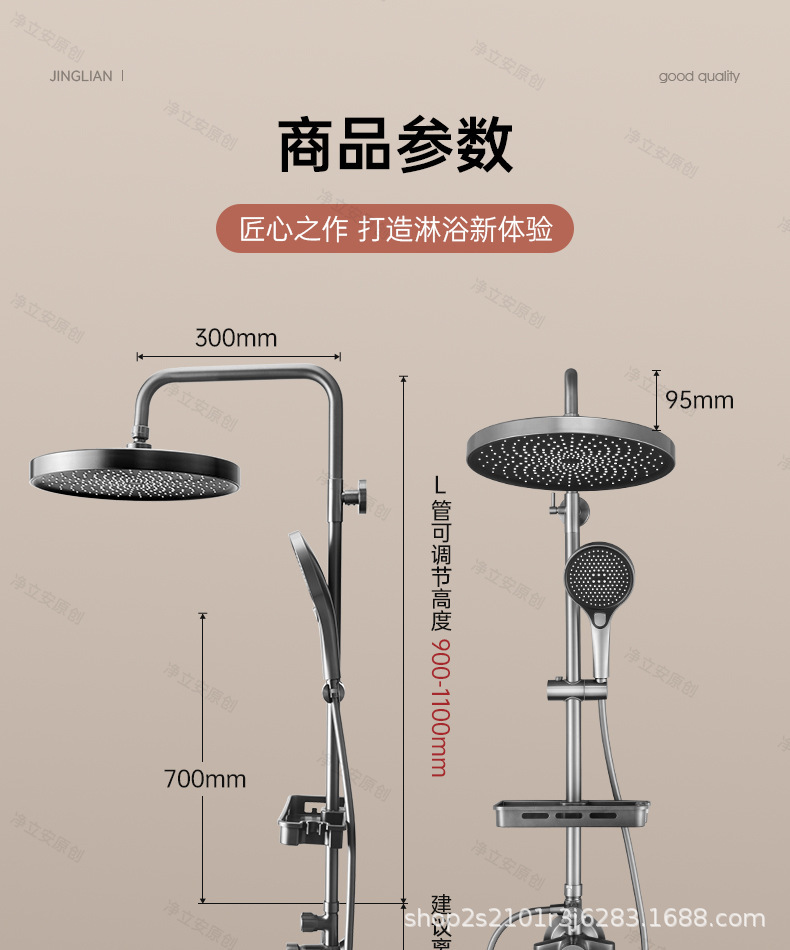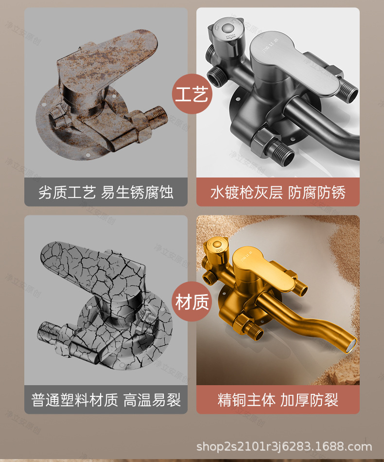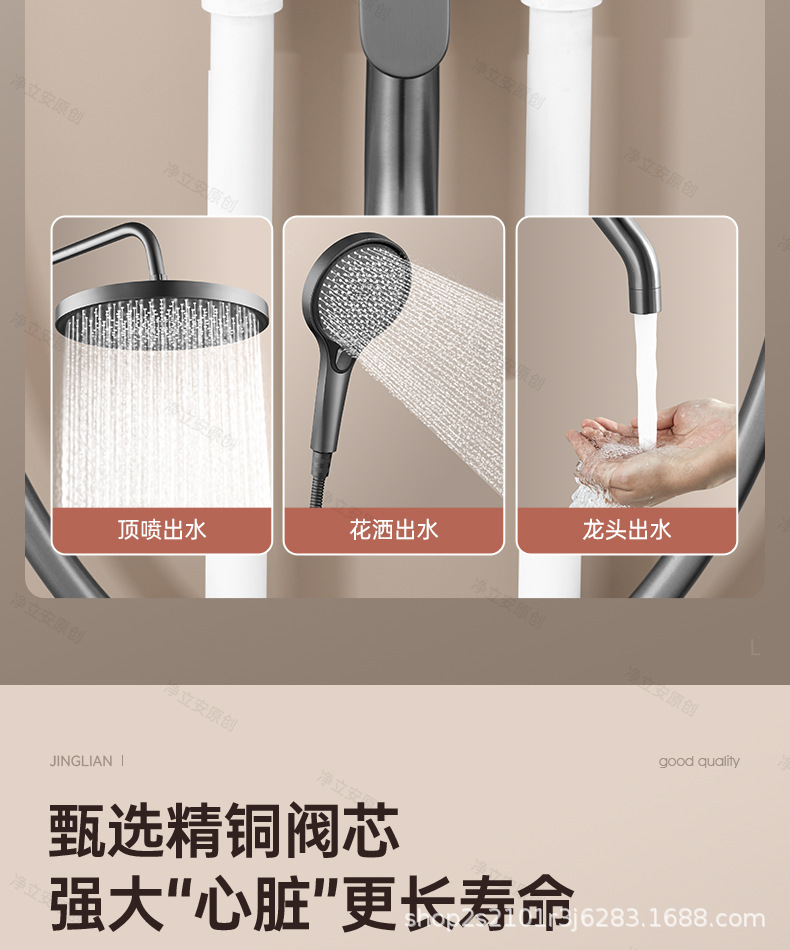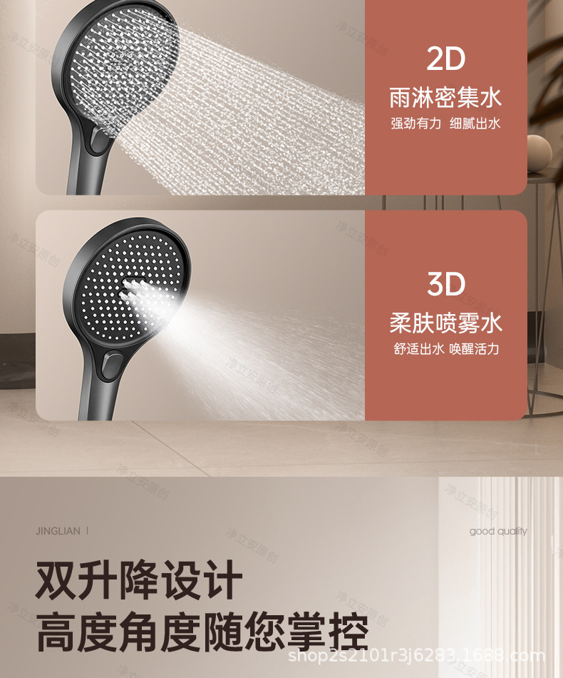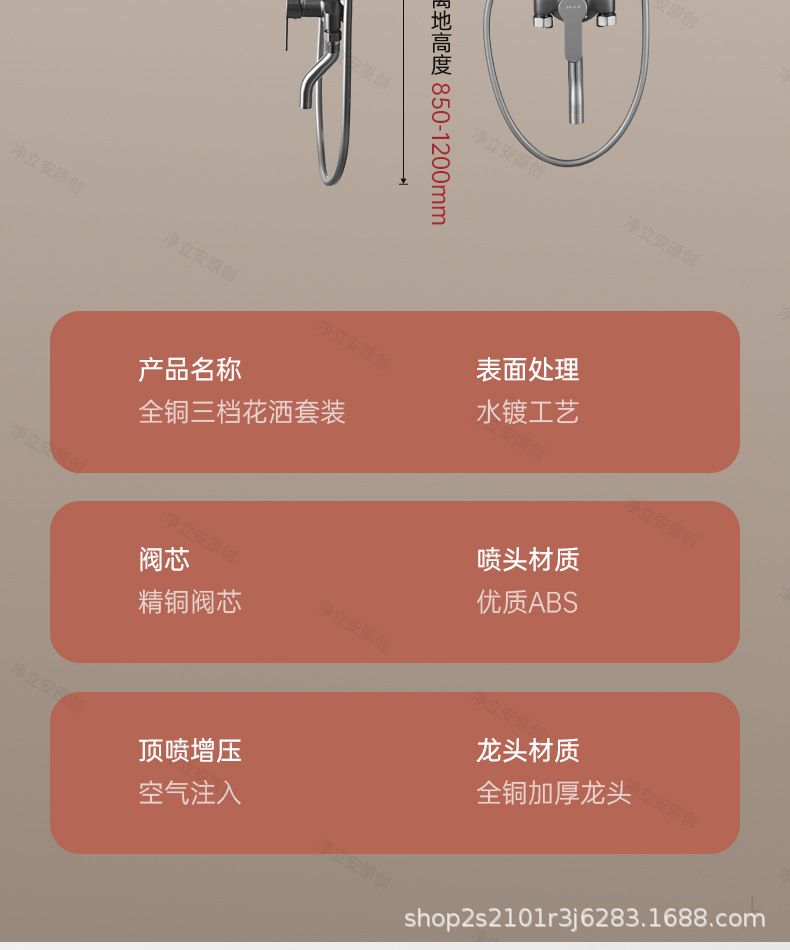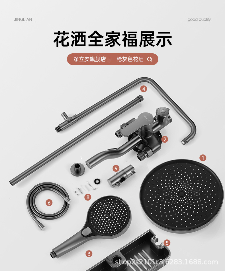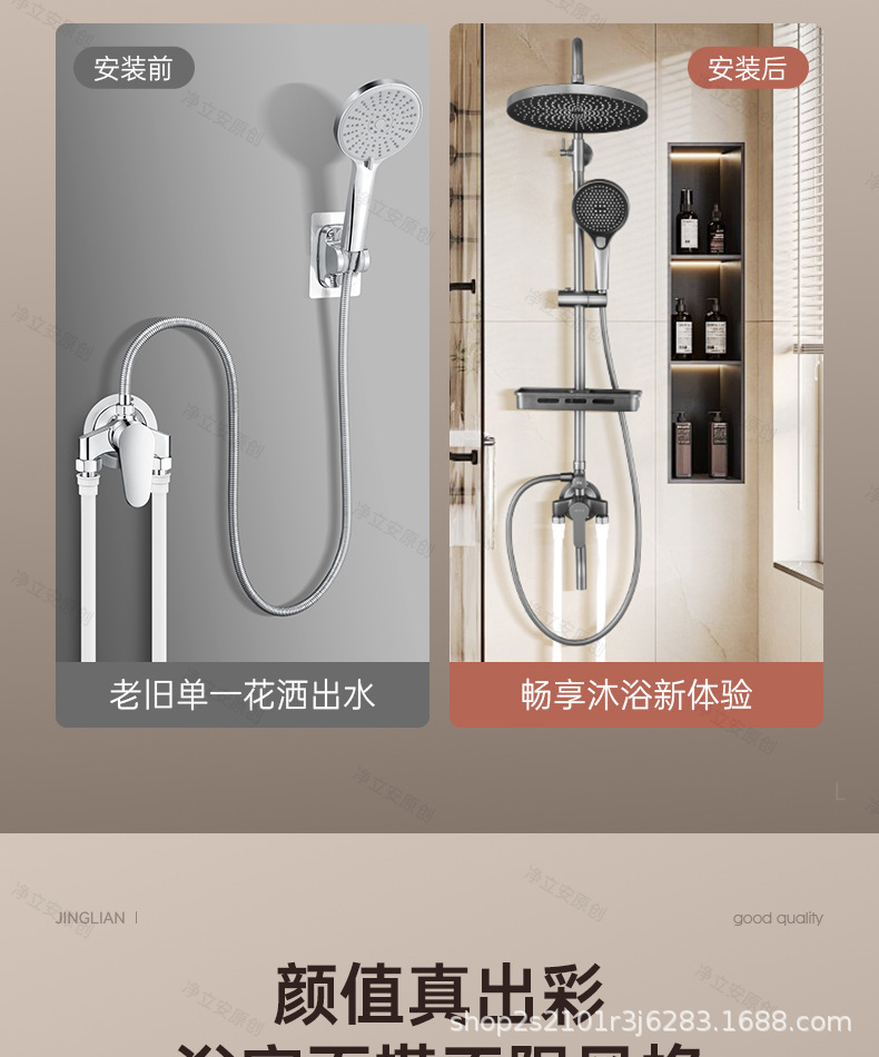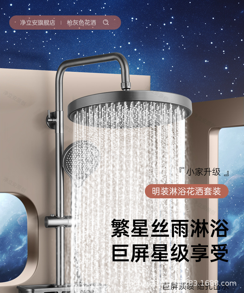 표면 장착형 샤워 헤드 세트, 전체 구리 가압 스프레이 헤드, 욕실 노출형 파이프, 일체형 샤워기 세트